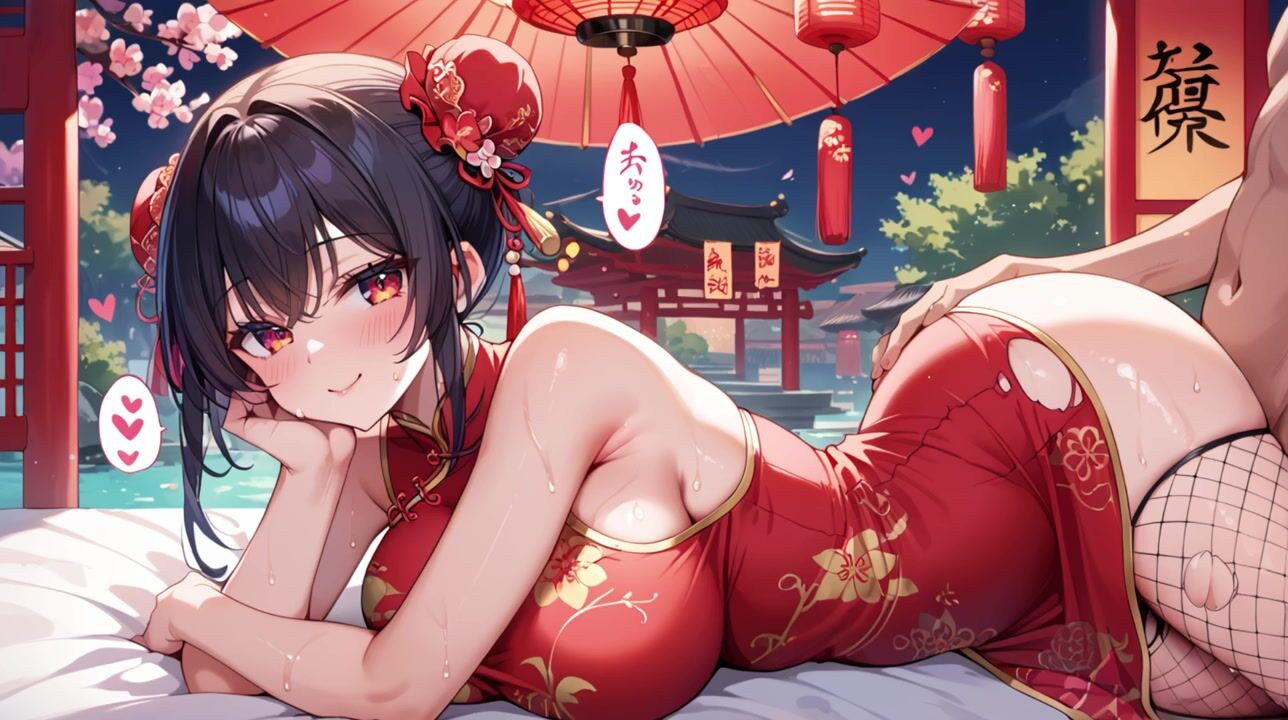 お団子ヘアのチャイナドレス娘がローターを挿れながらおもらしオナニー????