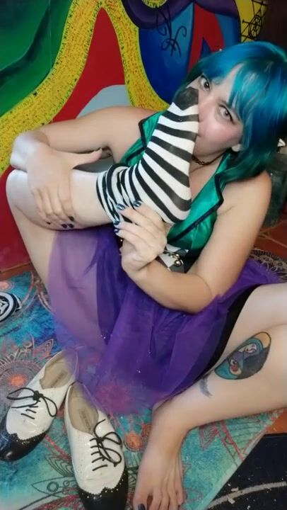 Elf girl takes off shoes and thigh highs