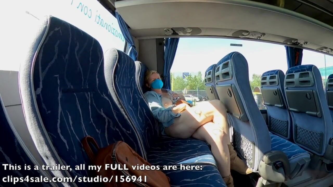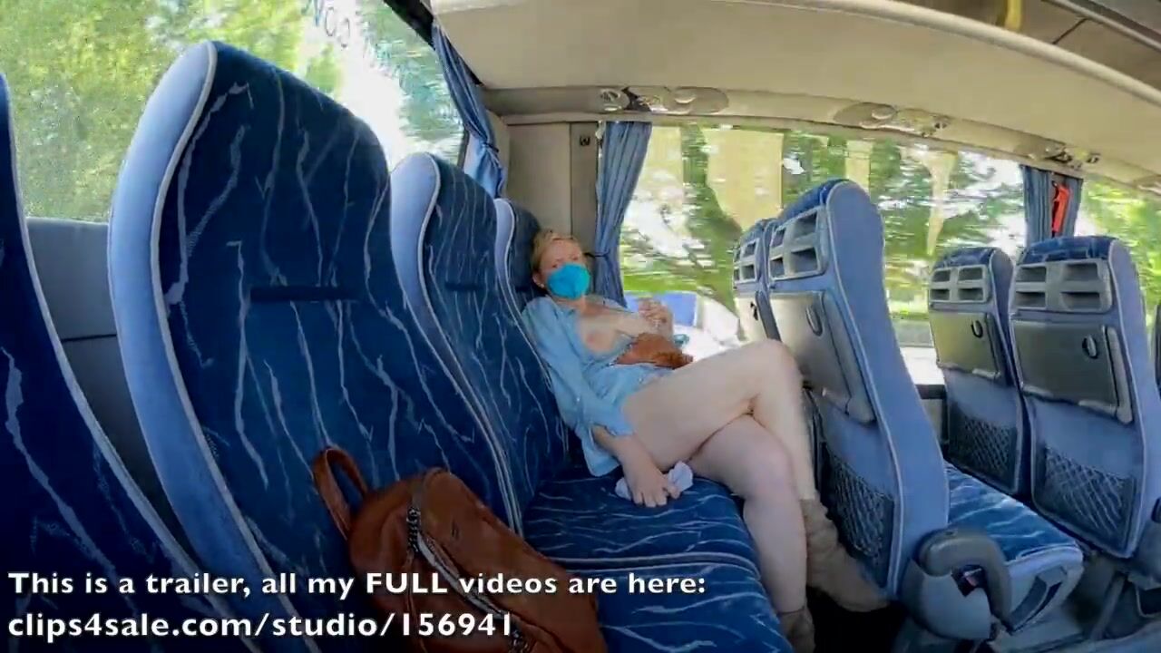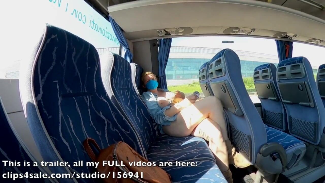 Exhibitionist MILF flashes and got crossed legs orgasm in a public bus