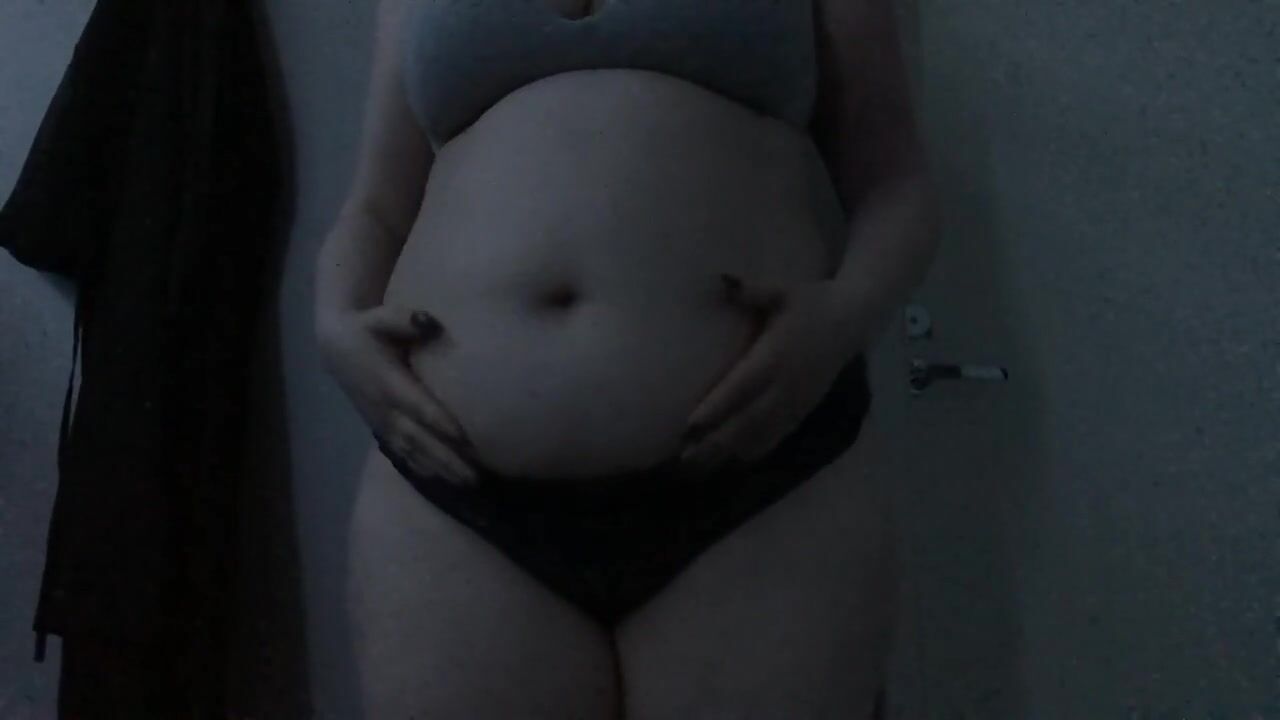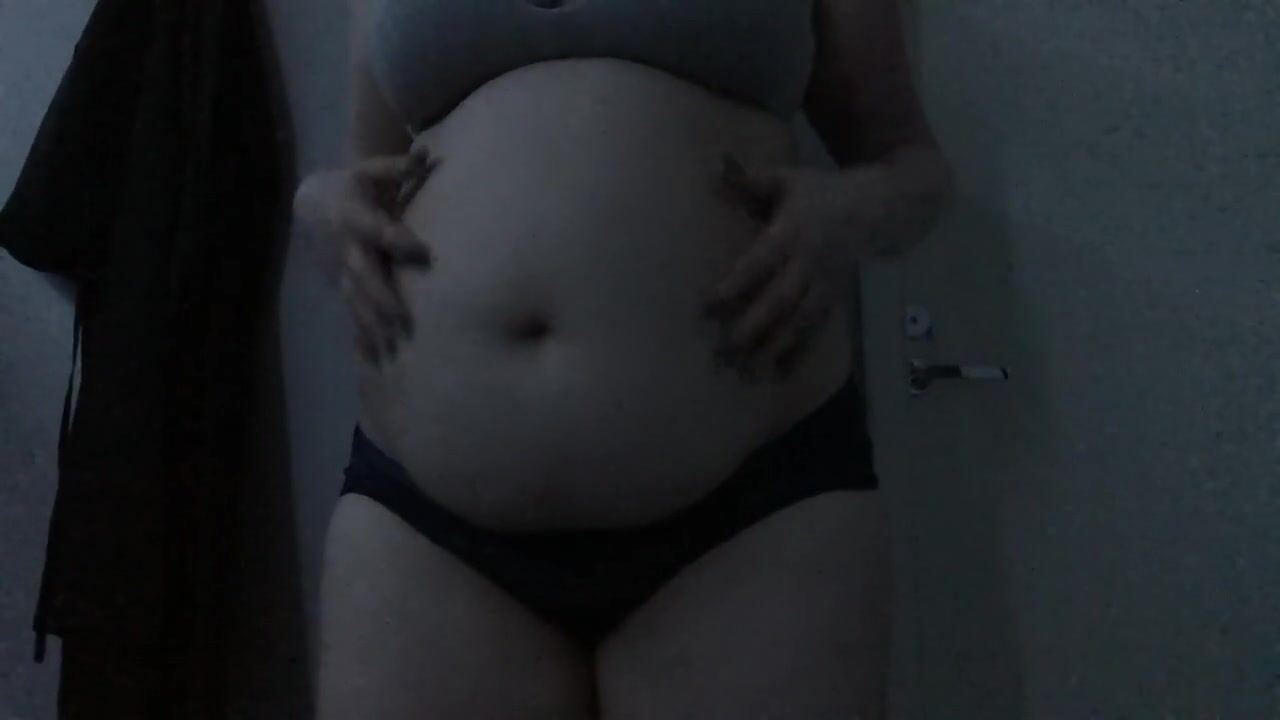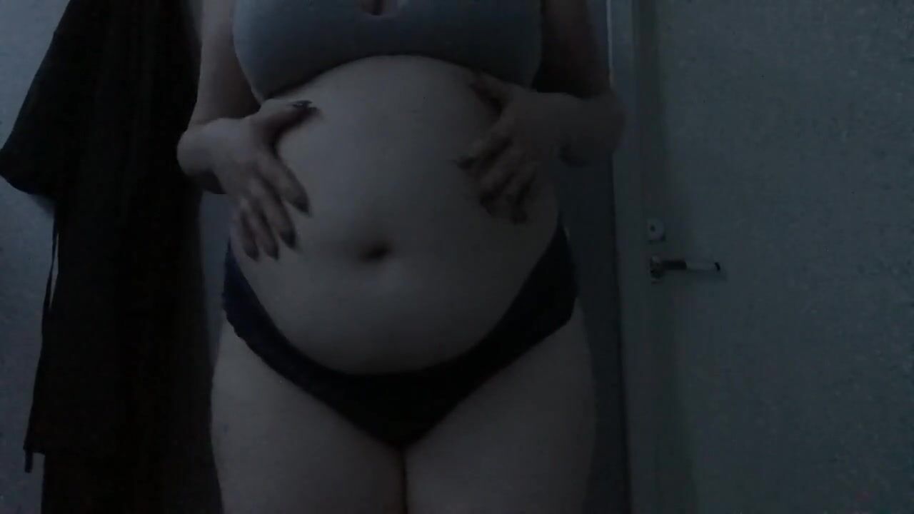 Feedee plays with empty and full bellyplay