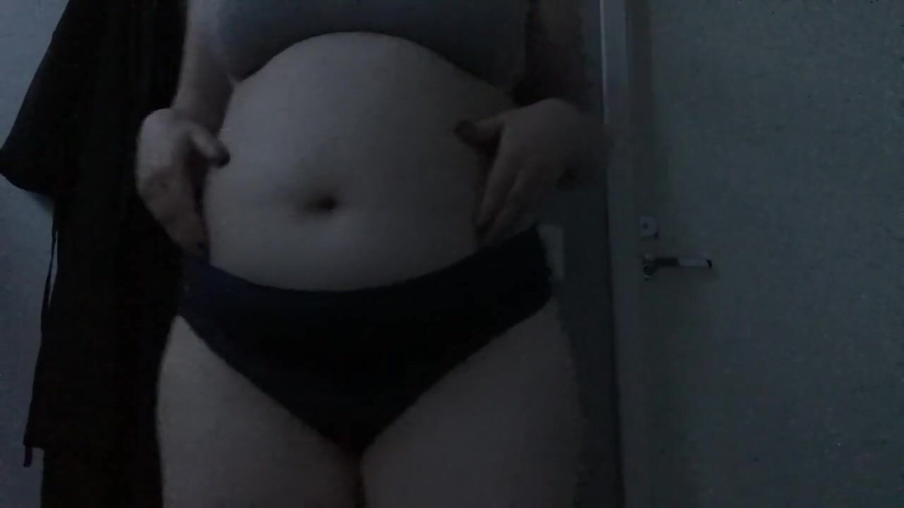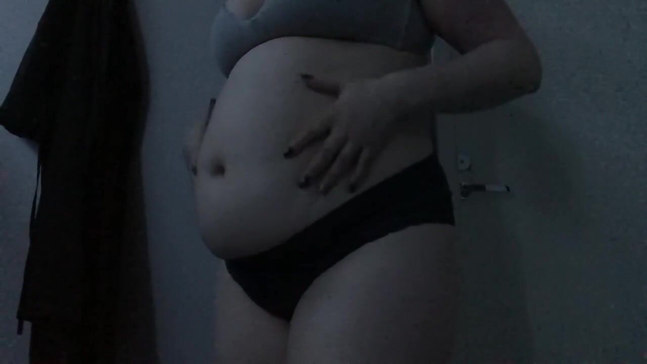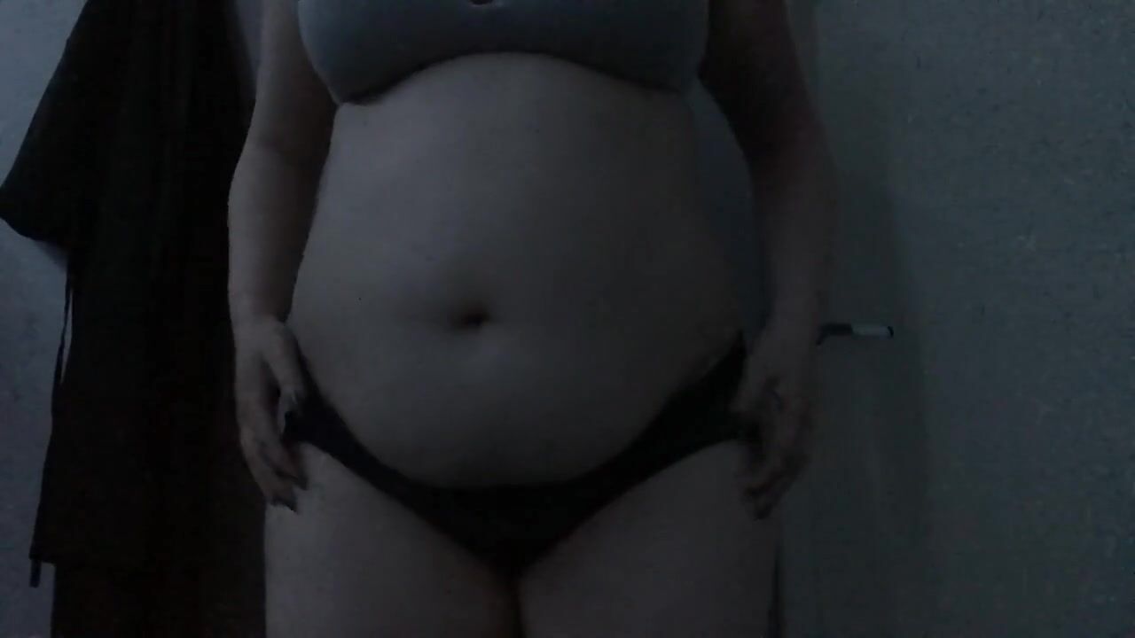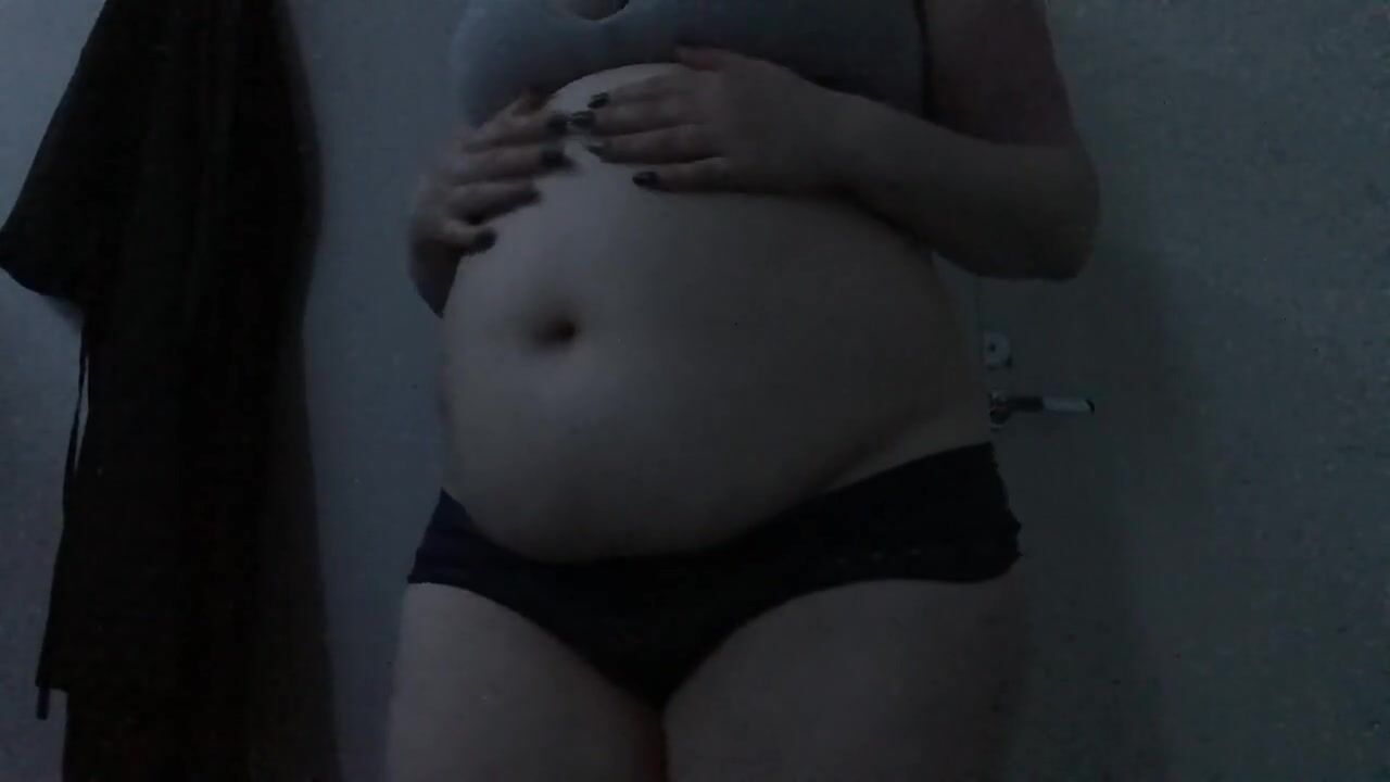 Feedee plays with empty and full bellyplay
