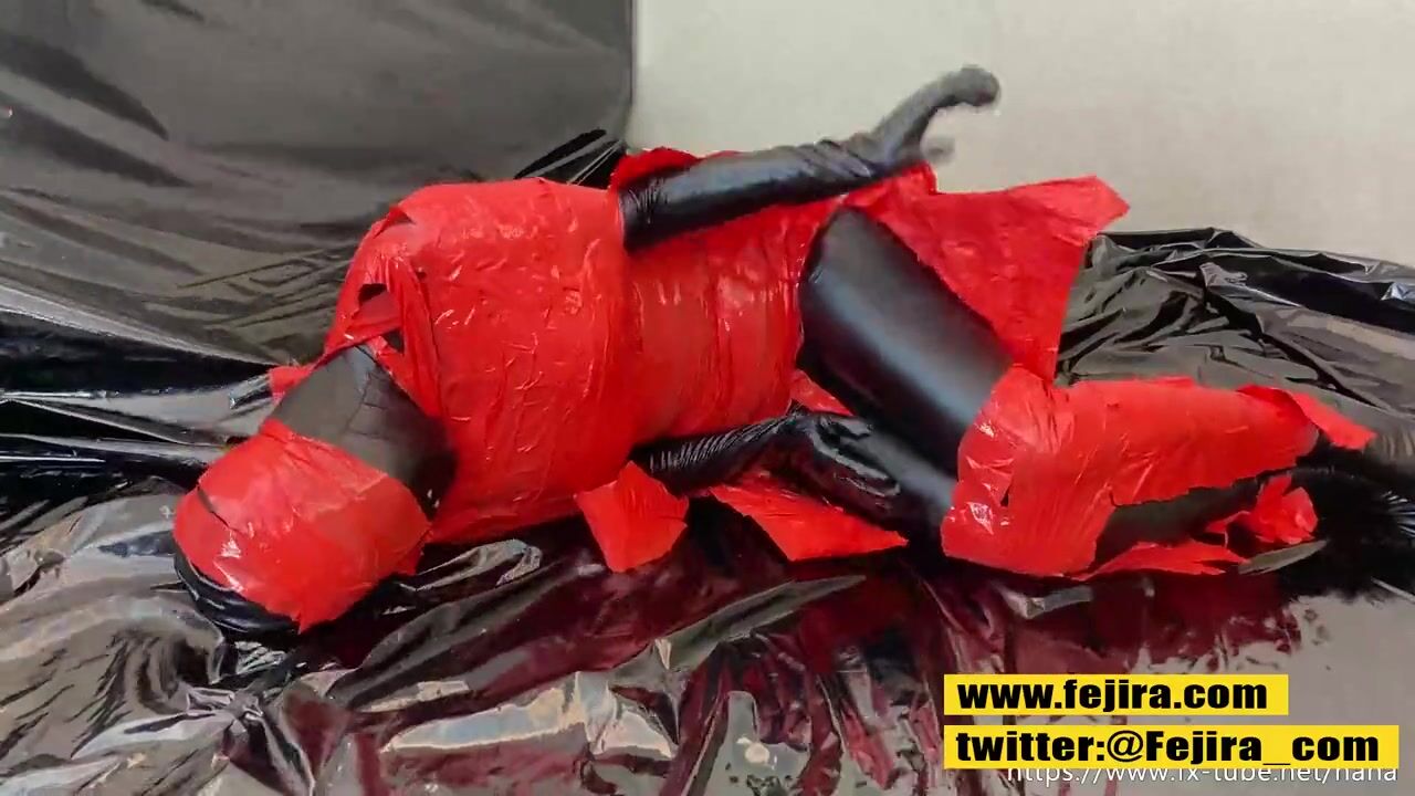 Fejira com 3 layer zentai and tape mummification orgasm