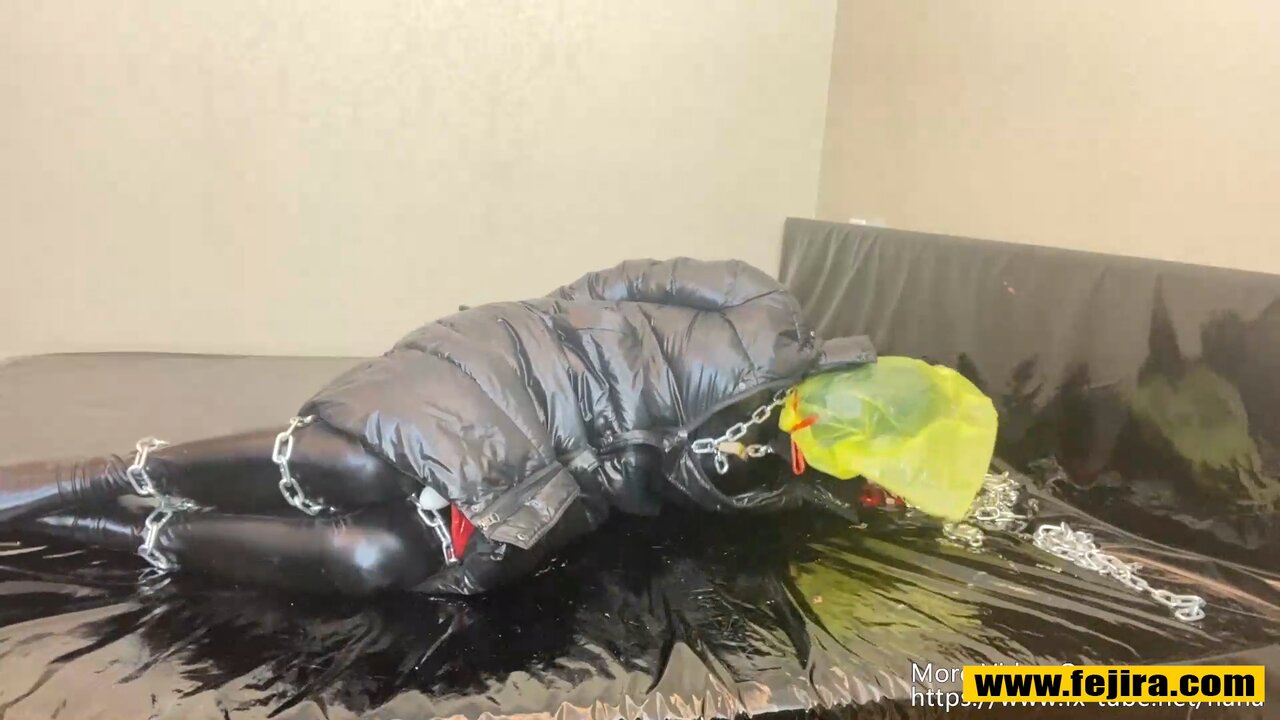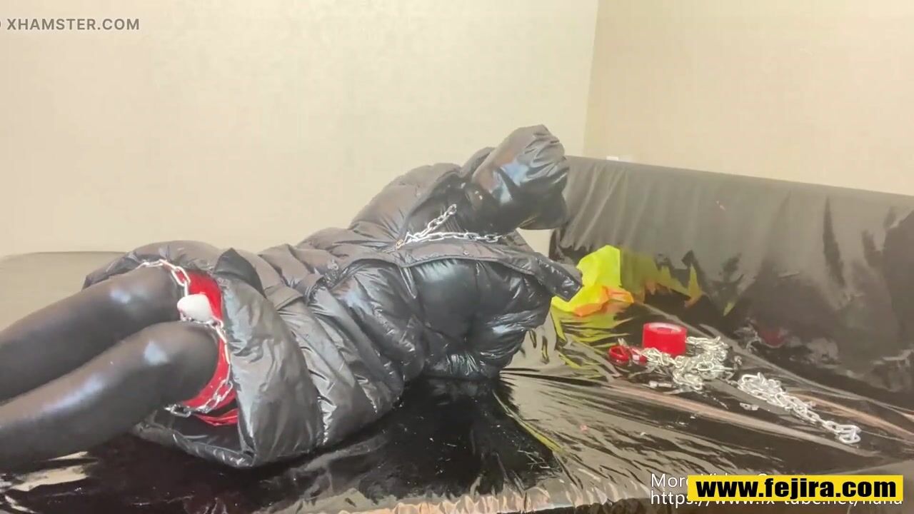 Fejira com Down coat chain self bondage and orgasm play