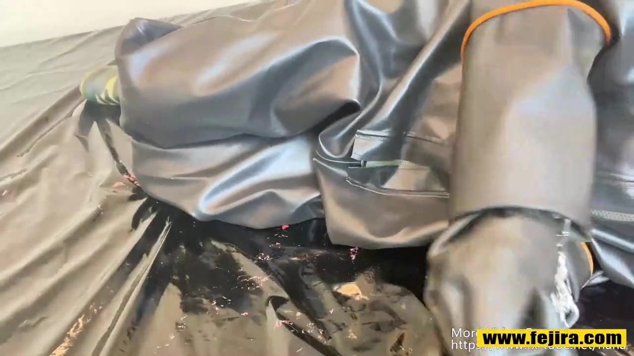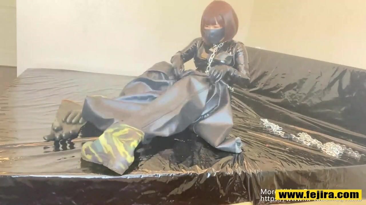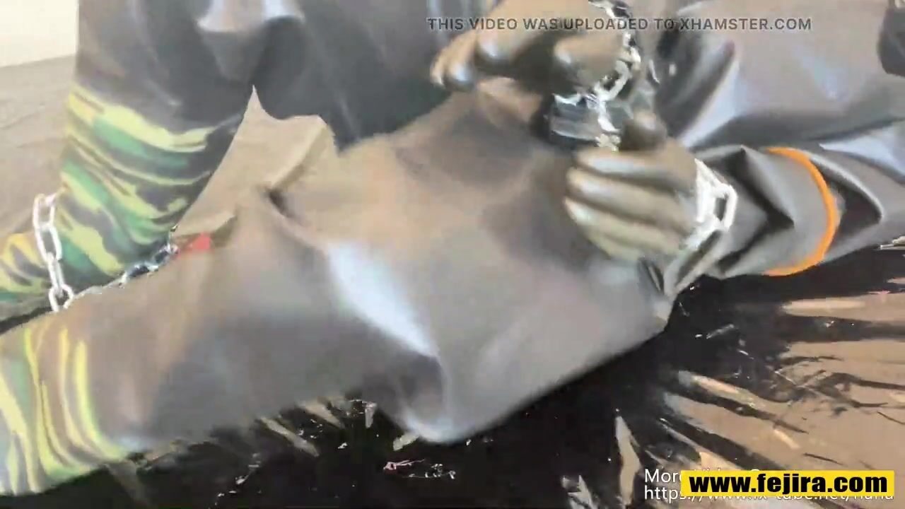 Fejira com Wearing heavy latex clothing tied to iron chains orgasm