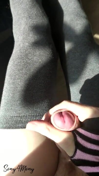 Femboy cums on stockings and moans. POV