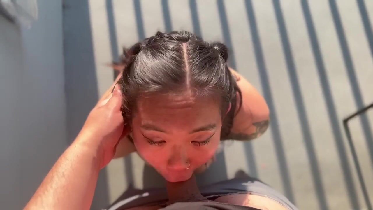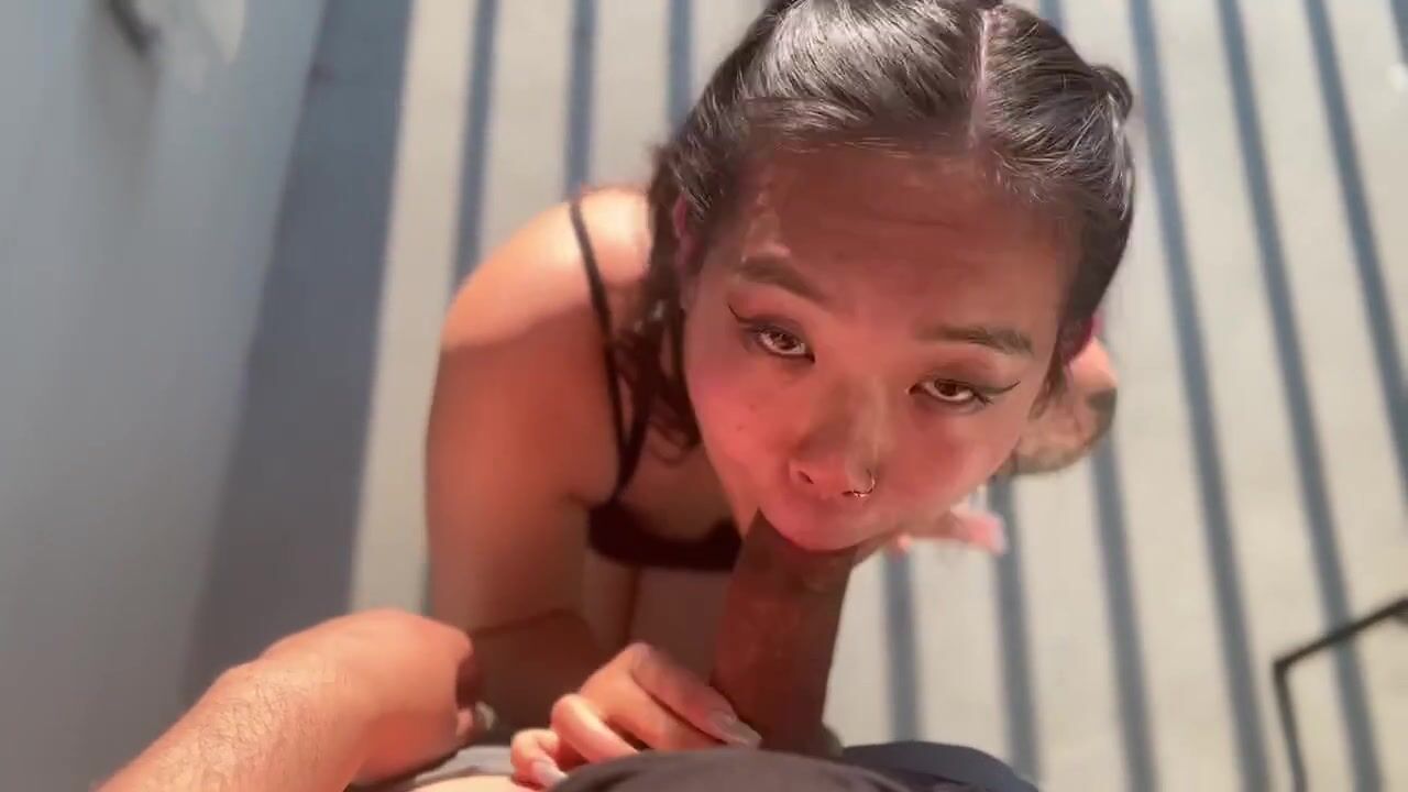 Fine ass asian sucking dick on hotel balcony