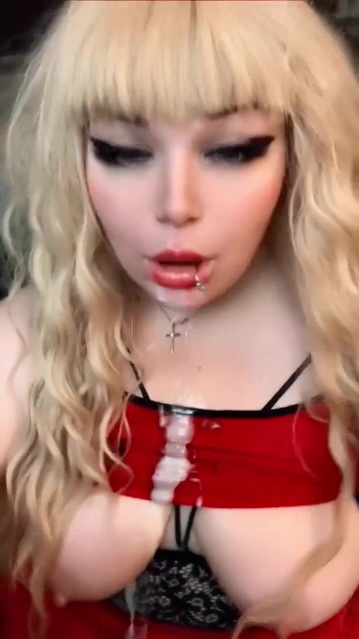 Dutch girl with needle pierced tits sucks cock and gets his cum in her eye