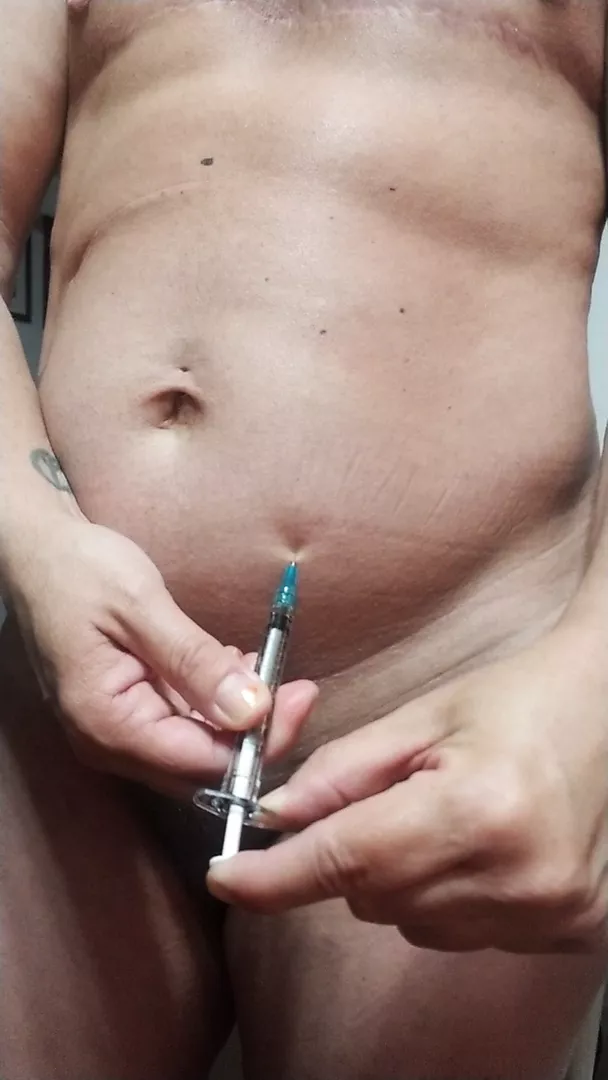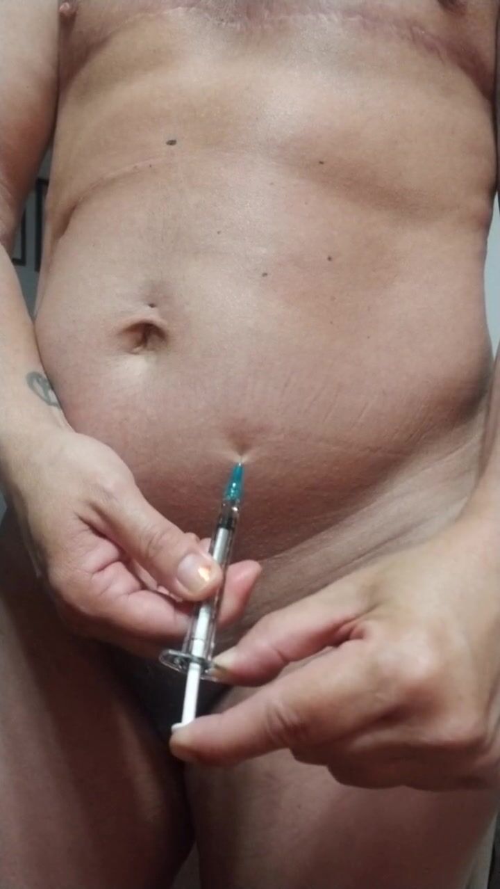 Ftm takes injection in cubby tummy