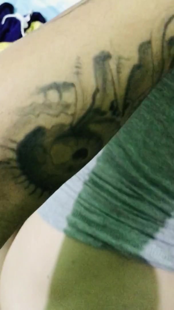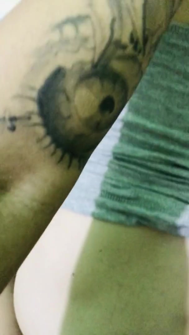 Schoolgirl tranny fucks classmate with tattooed dick! ANAL gapes, Cum covered ass