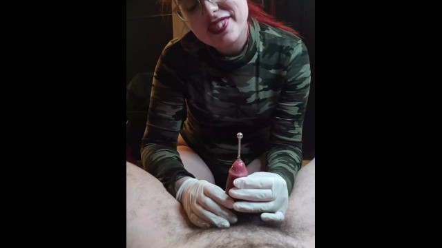 Fucking his dick with a stick - humiliating laugh