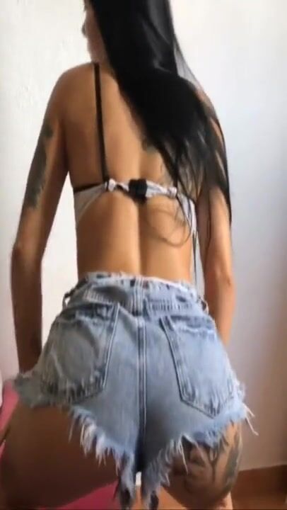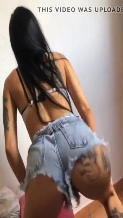 Schoolgirl tranny fucks classmate with tattooed dick! ANAL gapes, Cum covered ass