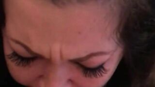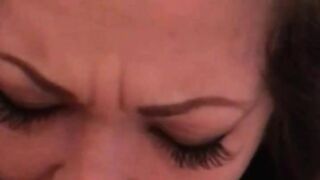 Dutch girl with needle pierced tits sucks cock and gets his cum in her eye