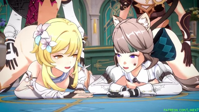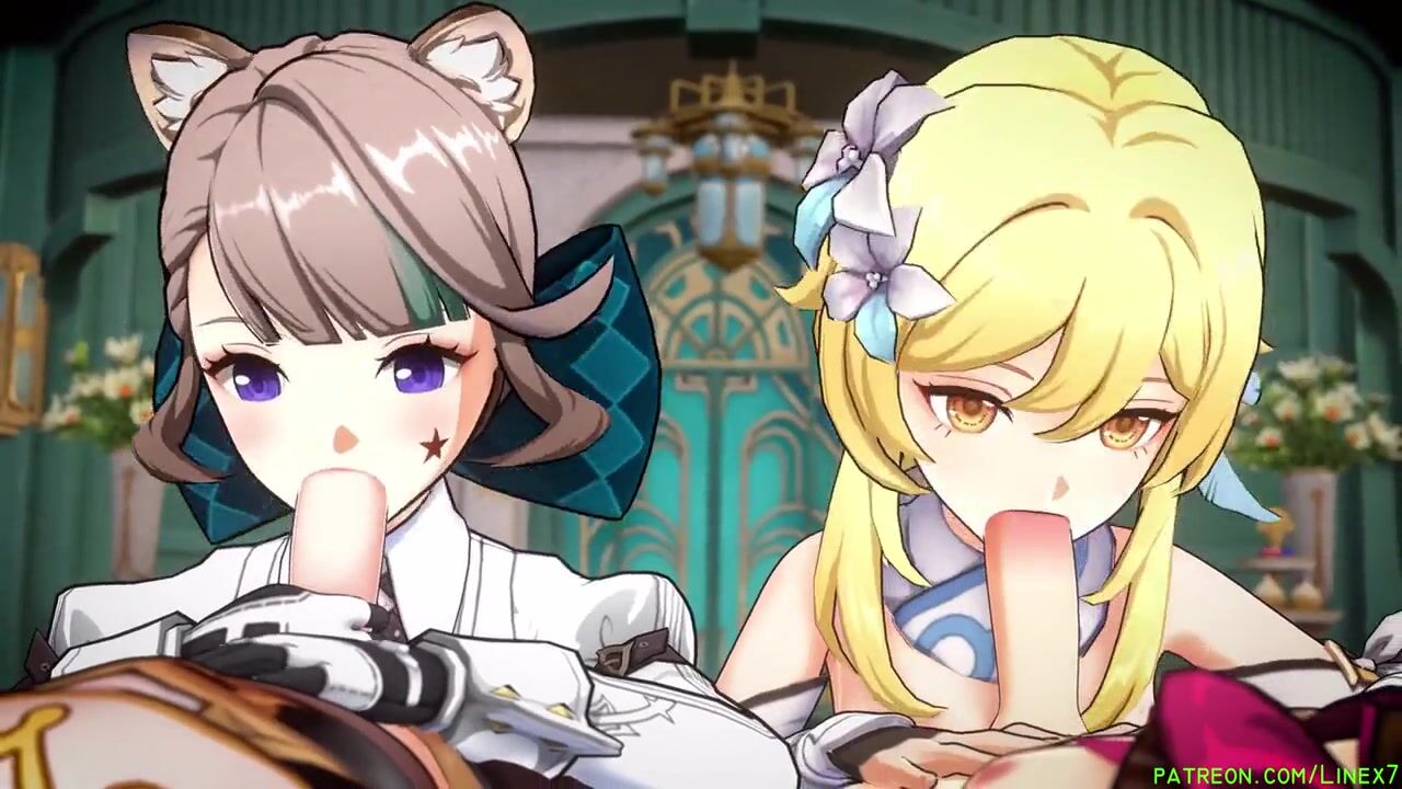 Genshin impact double fucked and blowjob Hentai