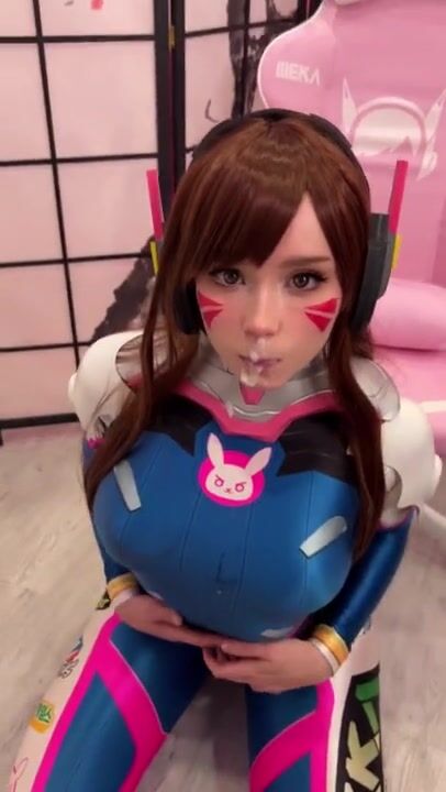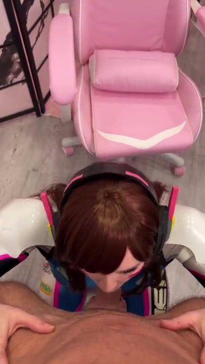Girl Cosplay D.Va from Overwatch and Sucks Dick till Facial