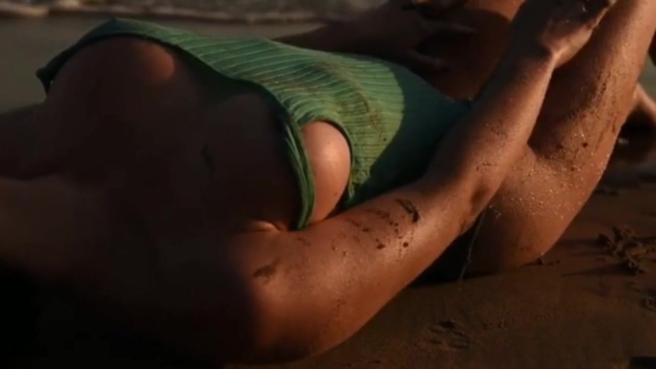 Girl with big boobs masturbates on the beach.
