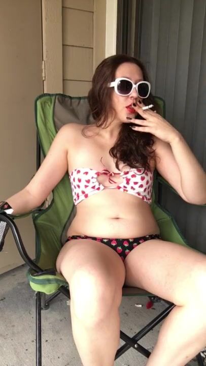 Goddess D Chubby Smoker in Bikini - Retro Look - Red Lipstick - Fat Stomach