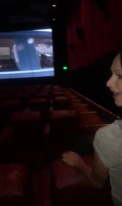 Gorgeous fit model gets completely naked in a public movie theater