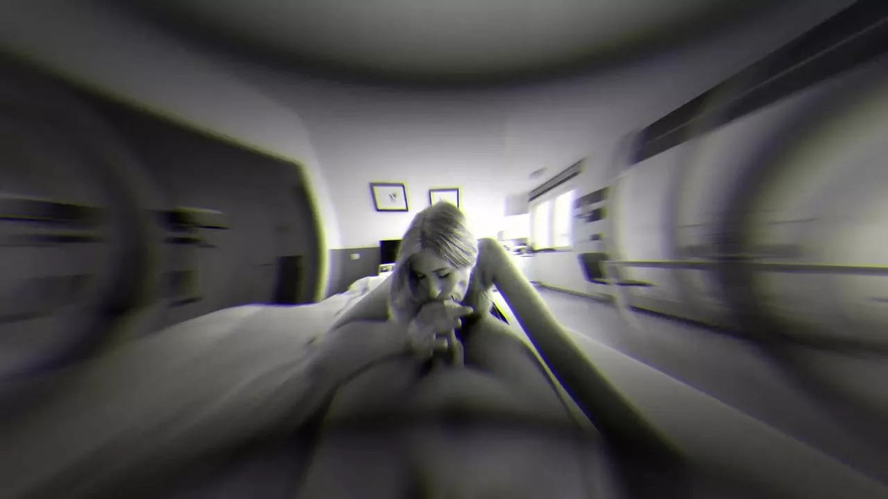 Dutch girl with needle pierced tits sucks cock and gets his cum in her eye
