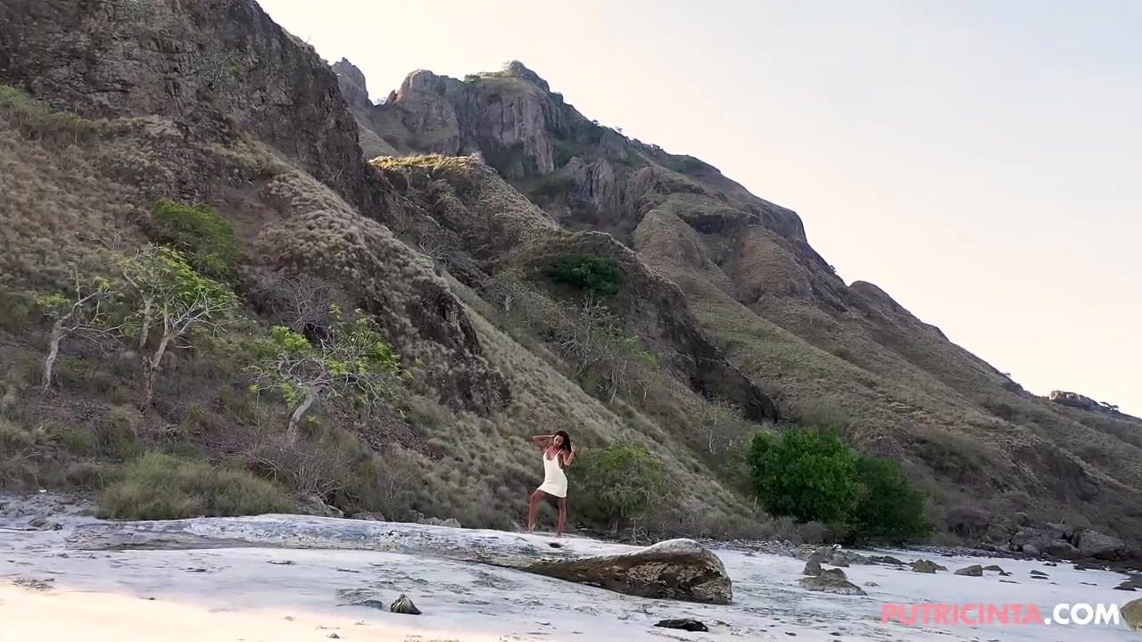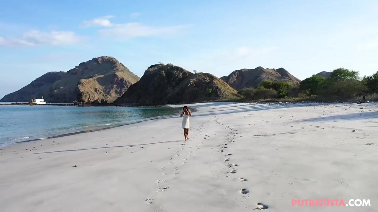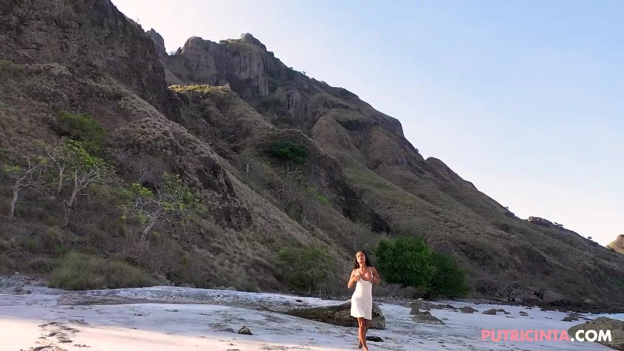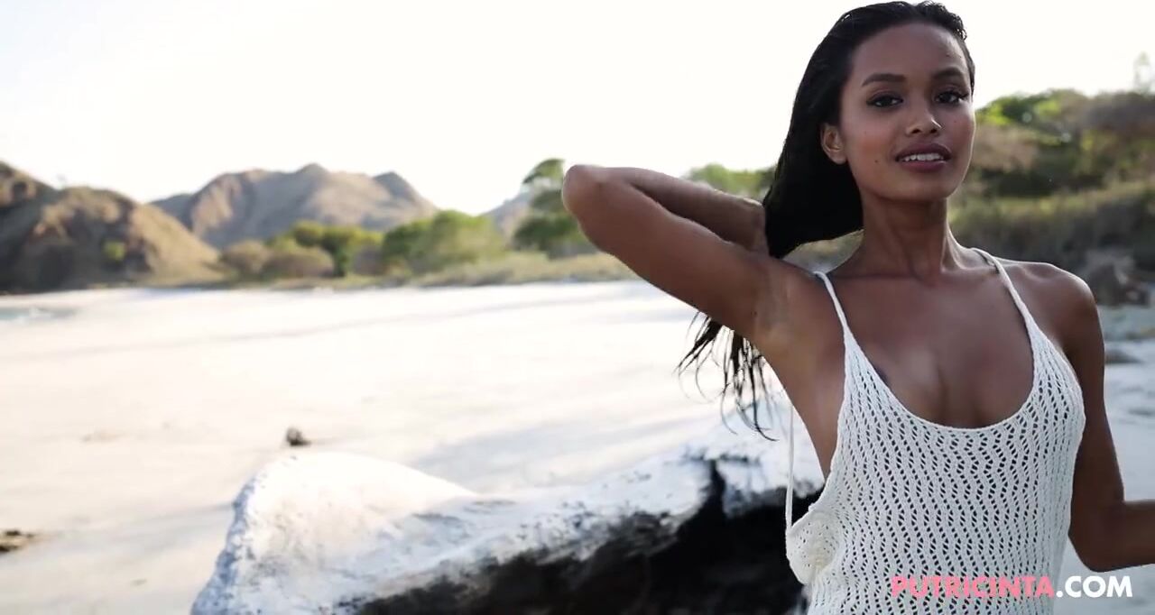 Hairless teen Putri cinta, on a beach with no panties