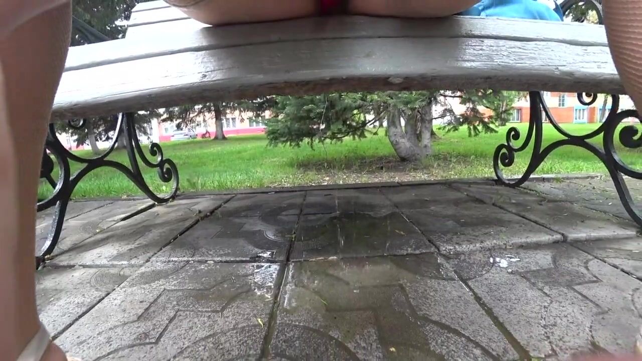 Hairy Pussy Pissing in a Public Park on a Bench. Fetish Outdoor. Great Pissing.