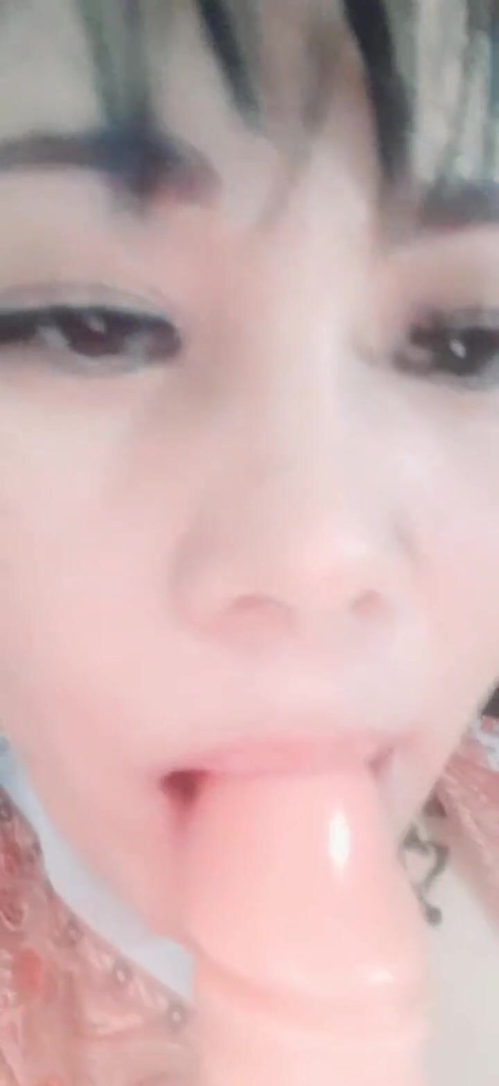 Hard suck with dildo, pretty face asian, chillax