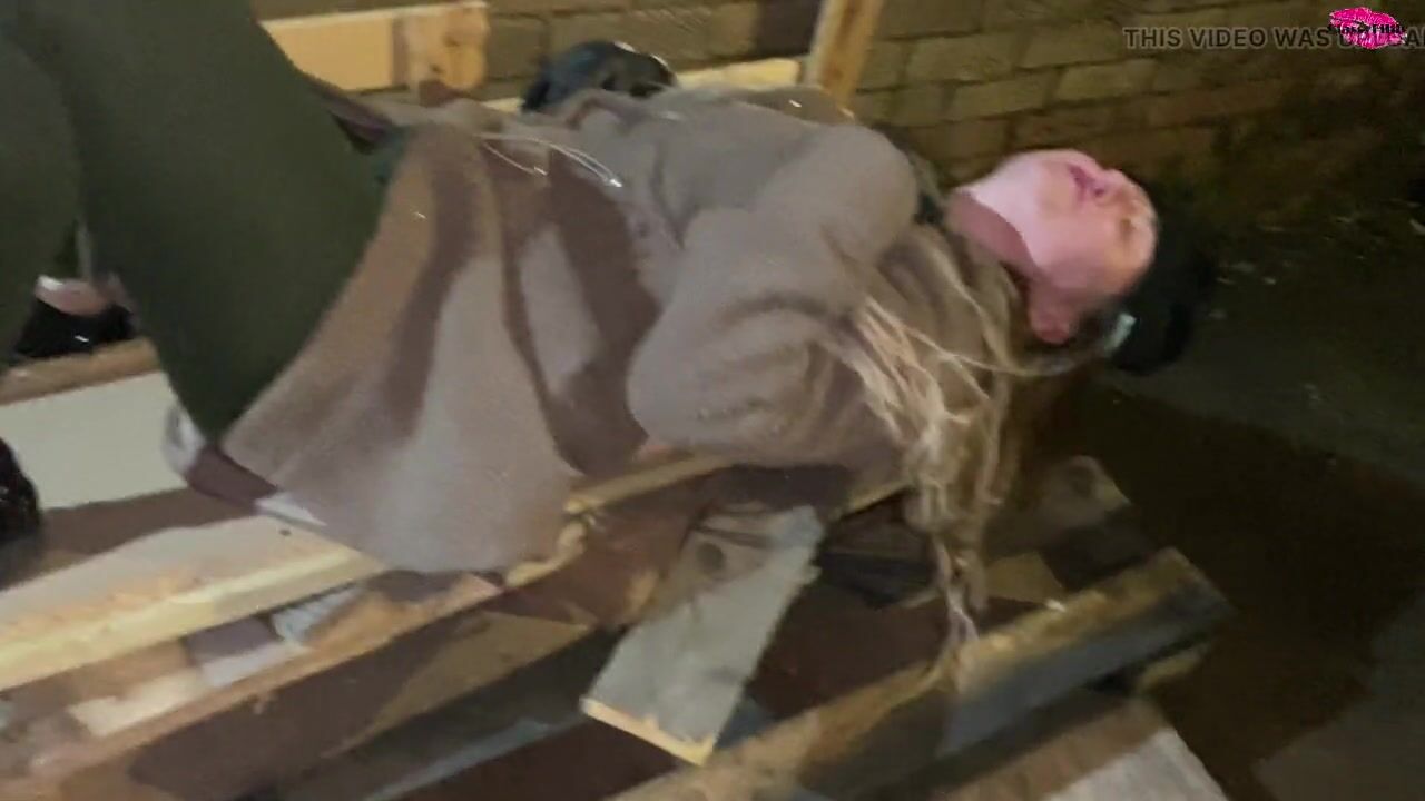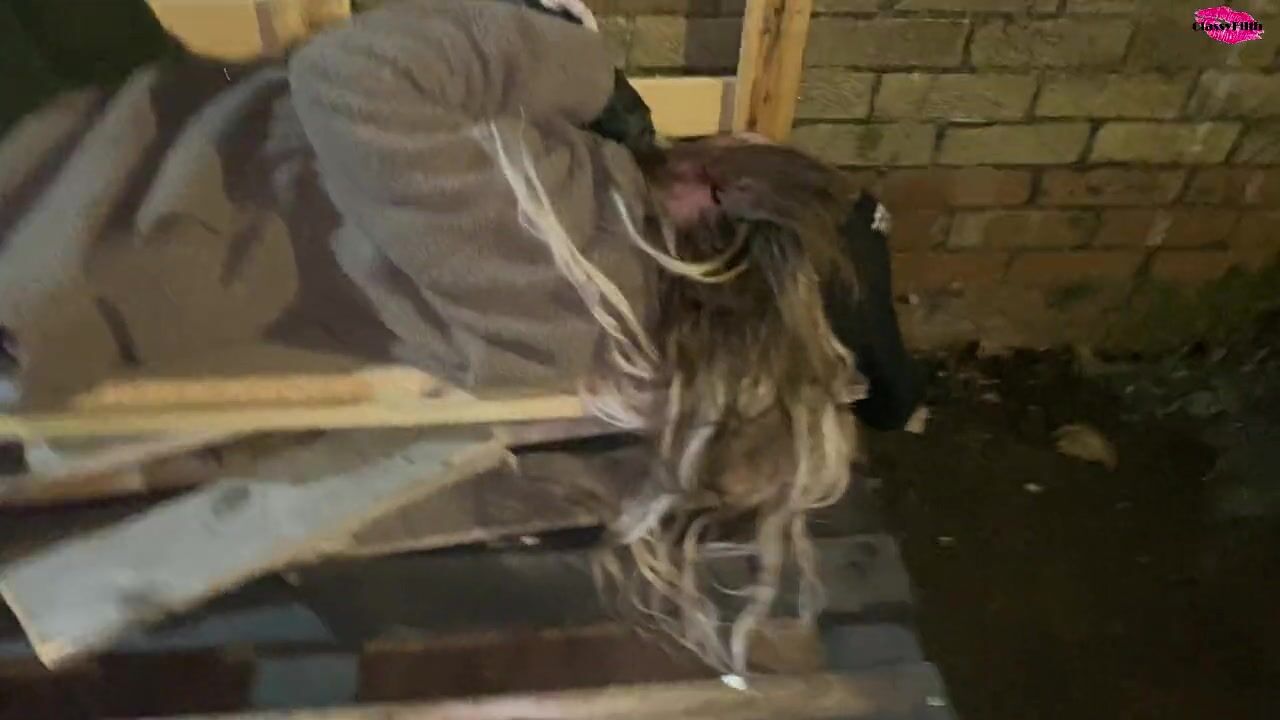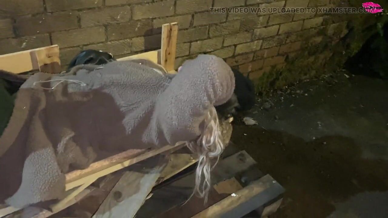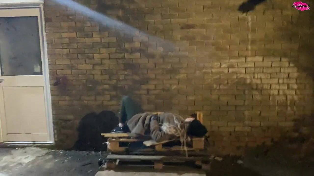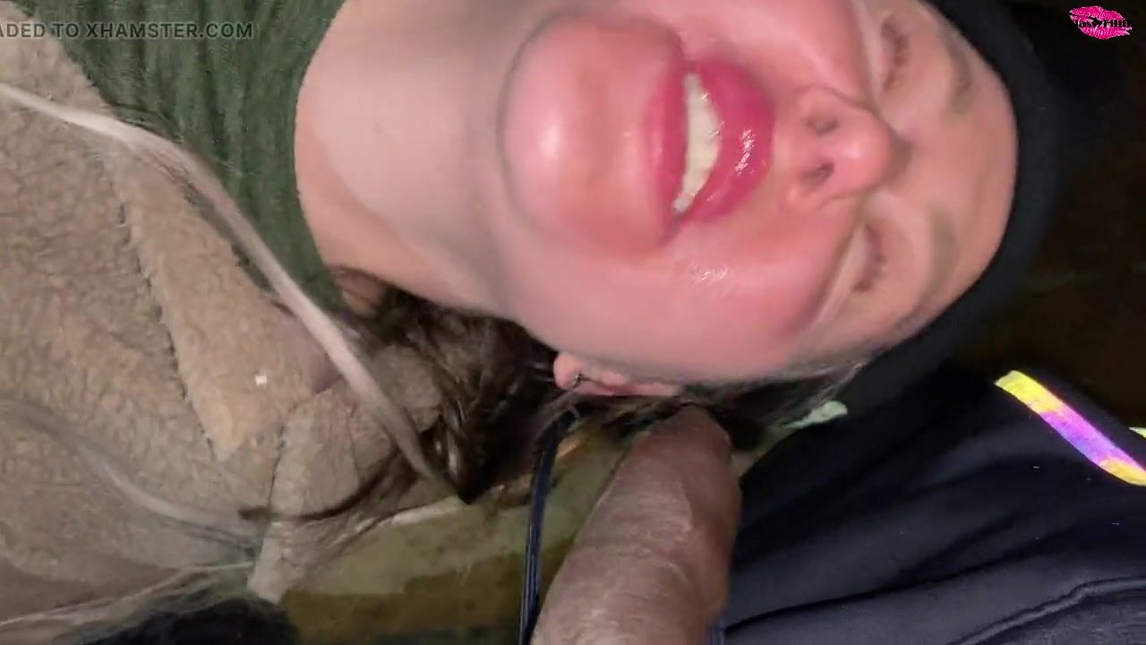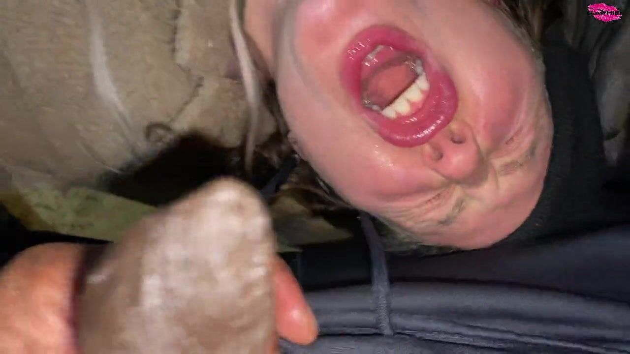 Homless woman poked in the face with a cock