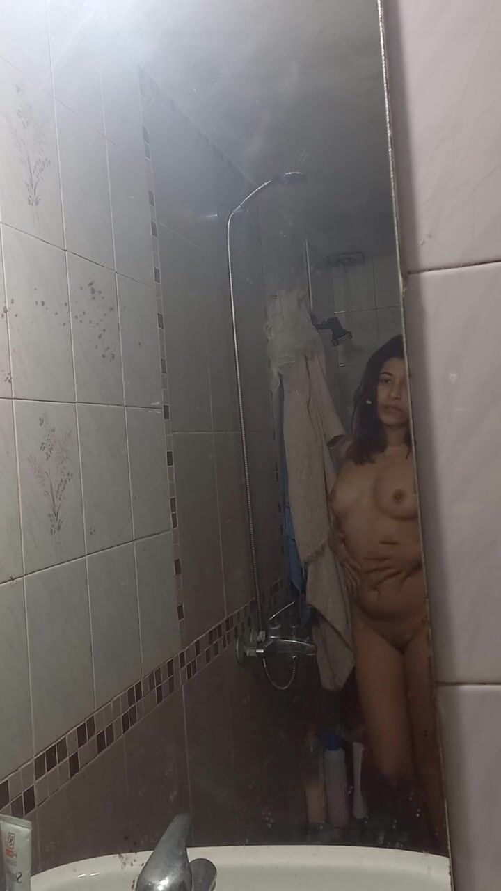 horny latina makes a video while bathing