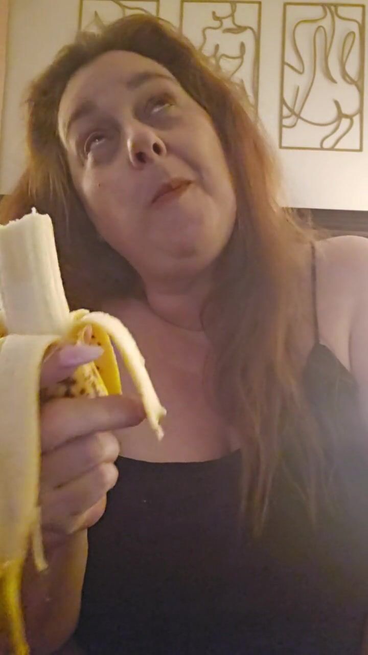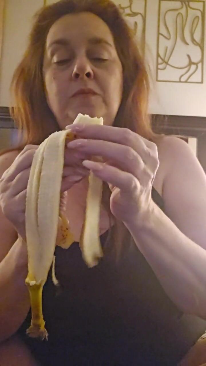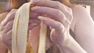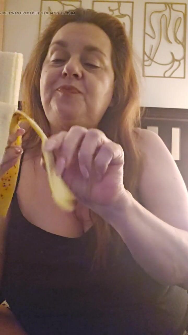 Hot all natural MILF eats a ripe banana per request