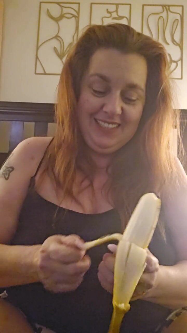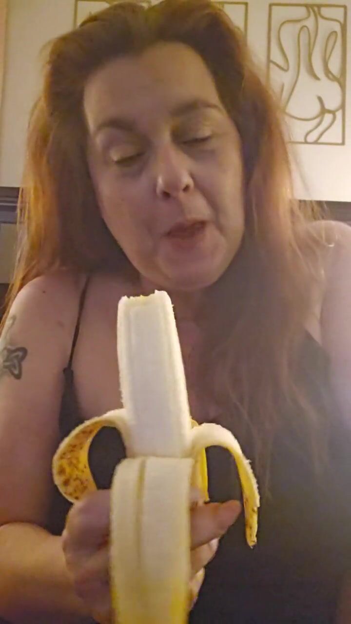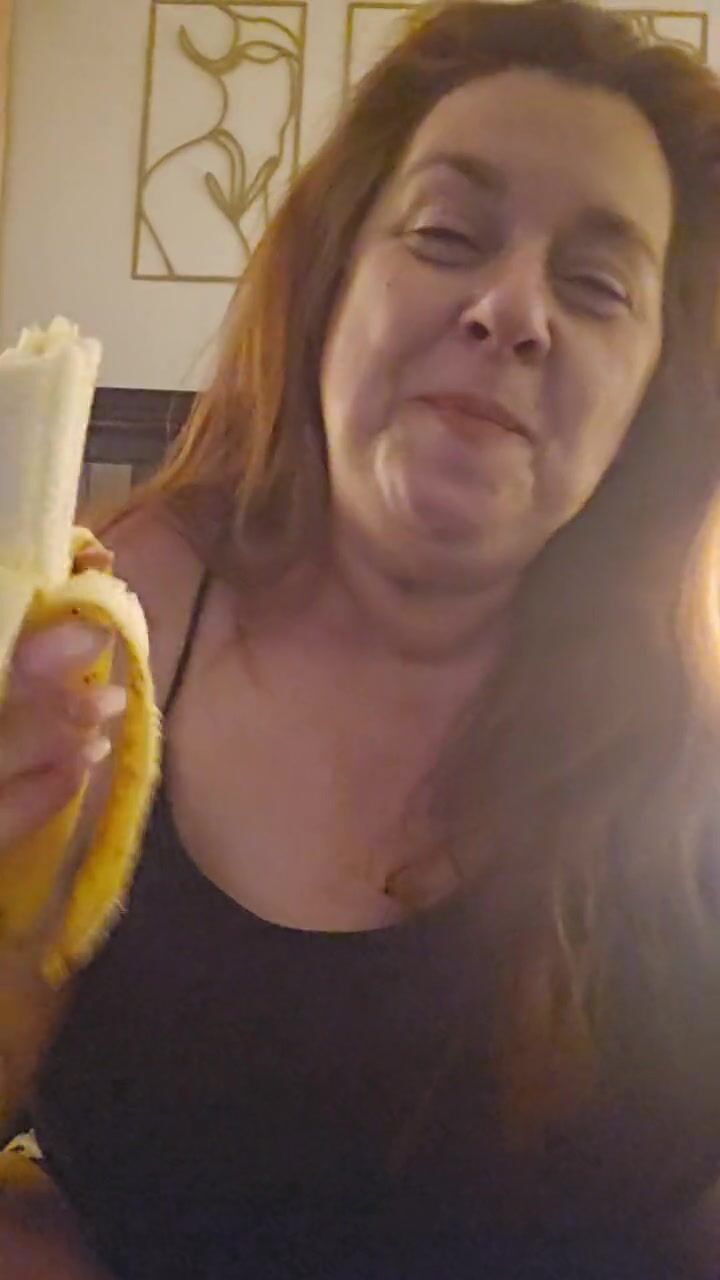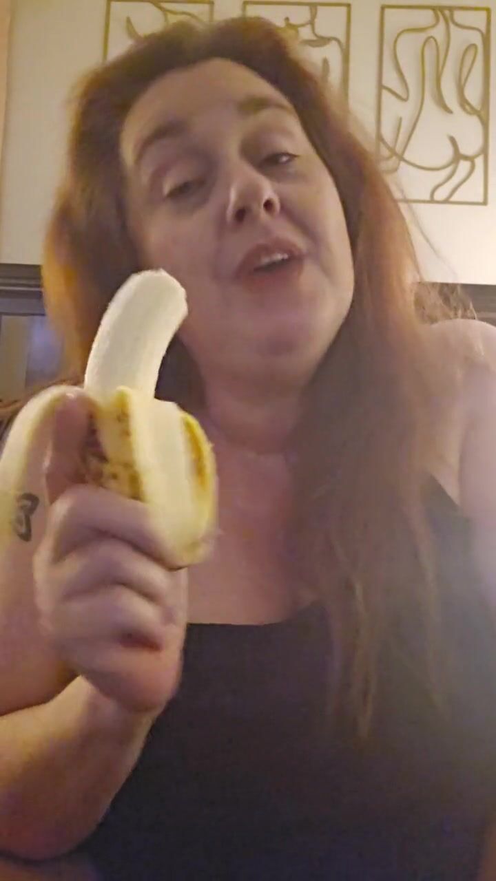 Hot all natural MILF eats a ripe banana per request