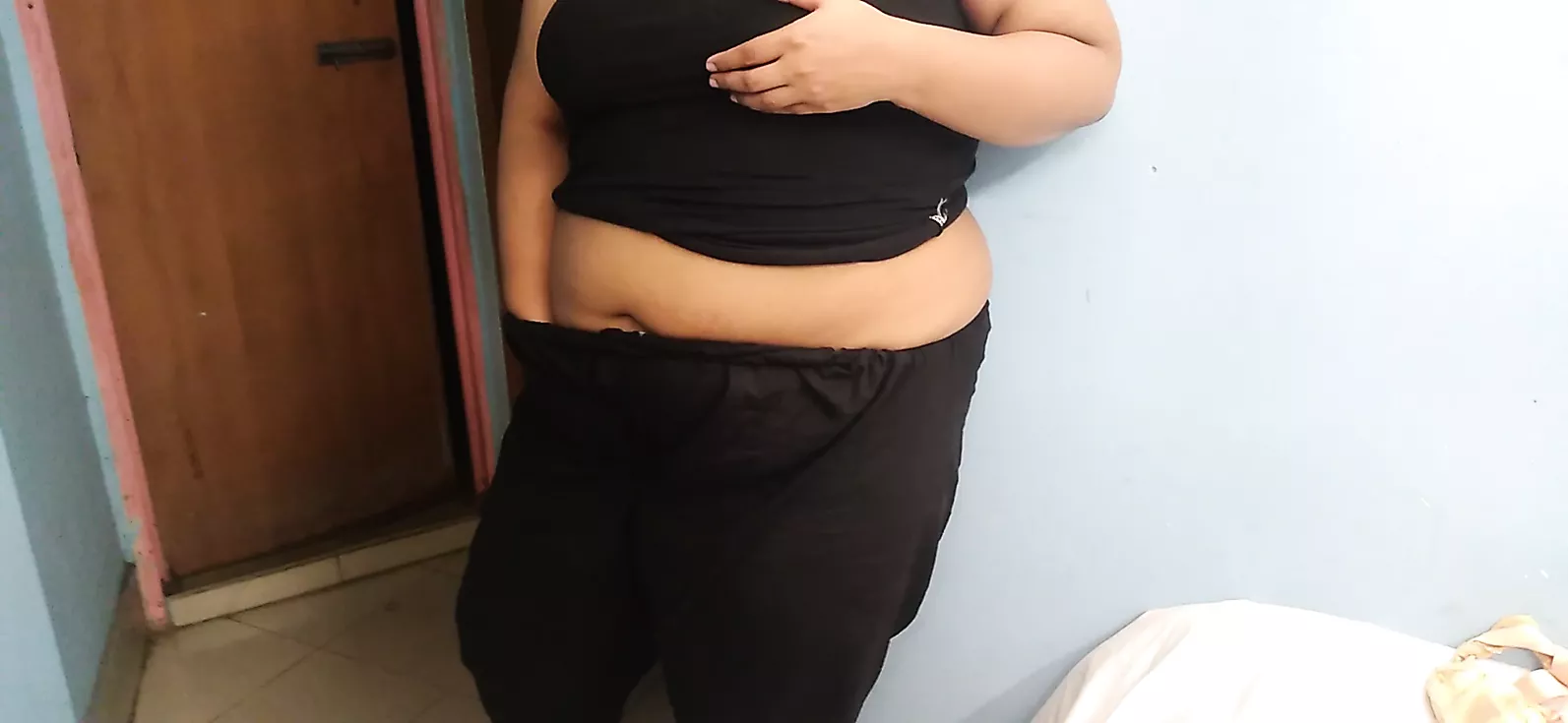 Putita caliente coquetea a la cámara mientras su novio no la ve