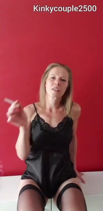 Hot milf in stockings smoking and playing with pussy