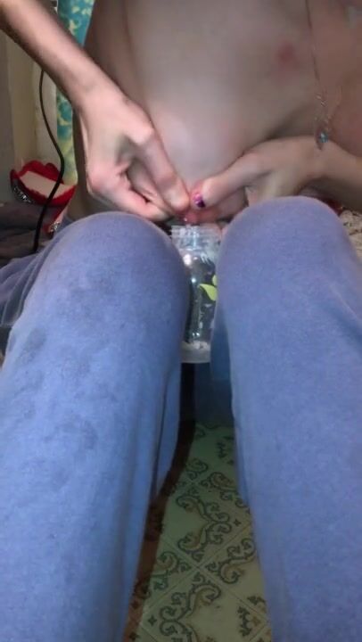 Hot milking teen drinks her breast milk