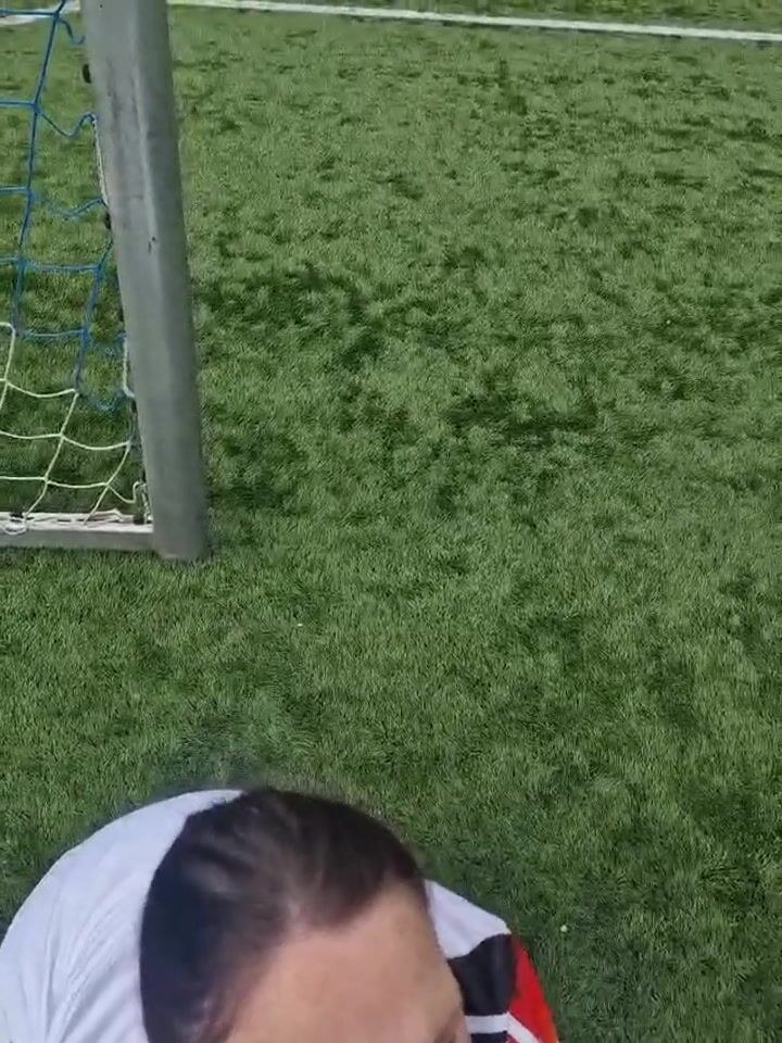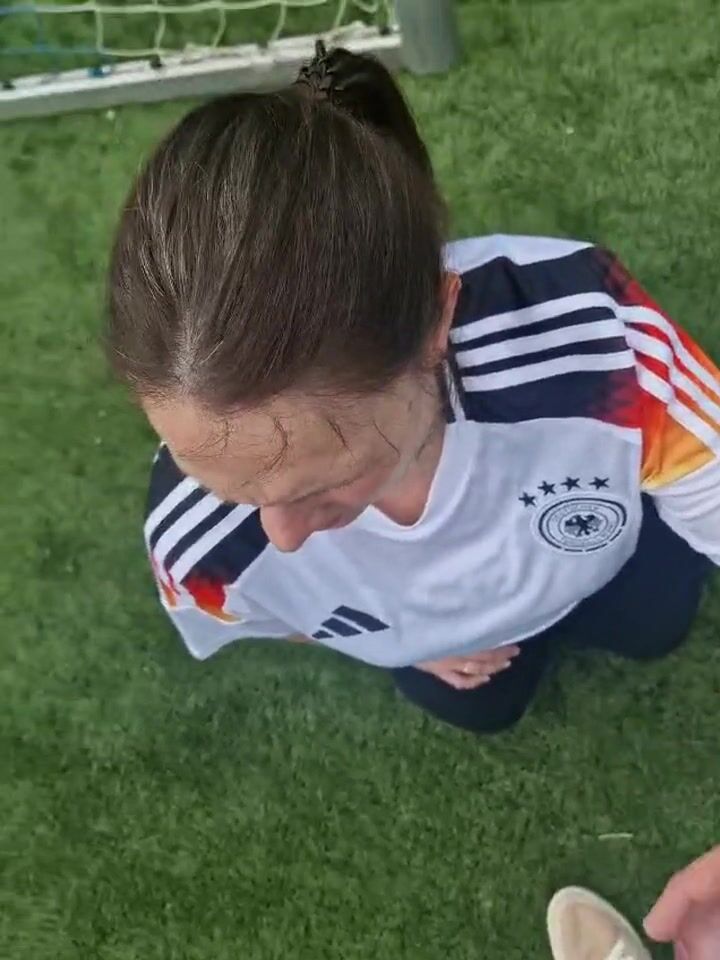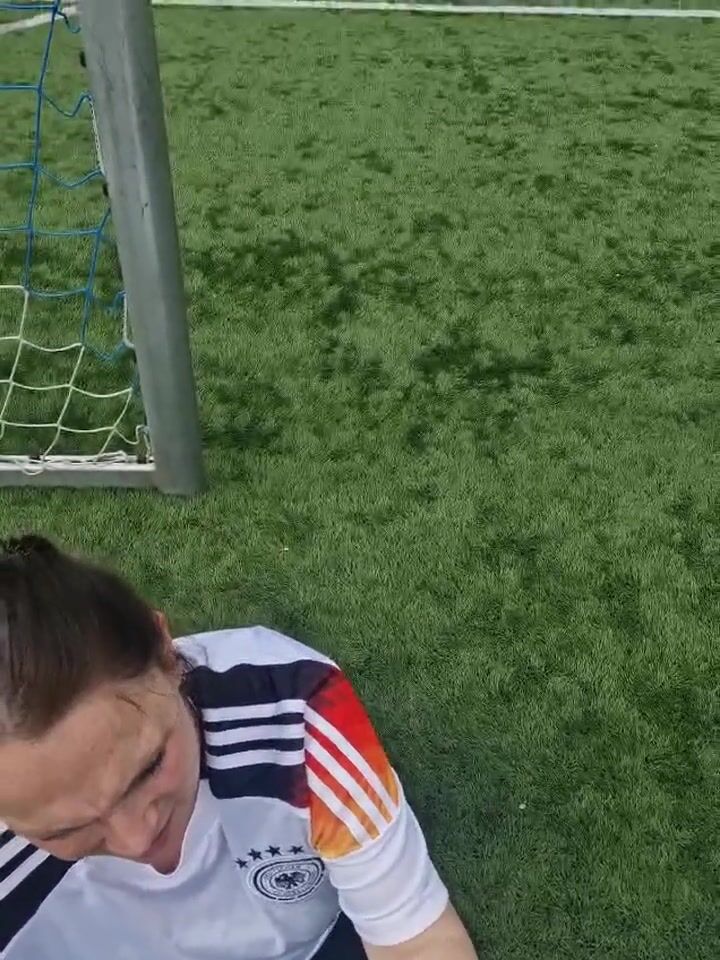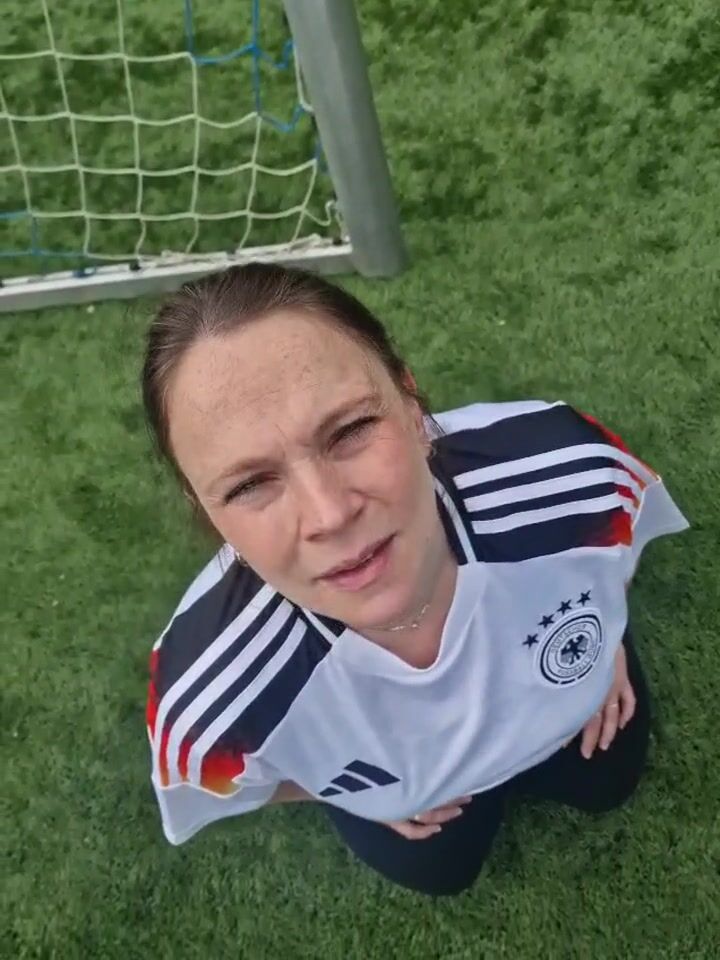 Hübsche Mutter lässt sich beim Fussball ins Gesichts spritzen