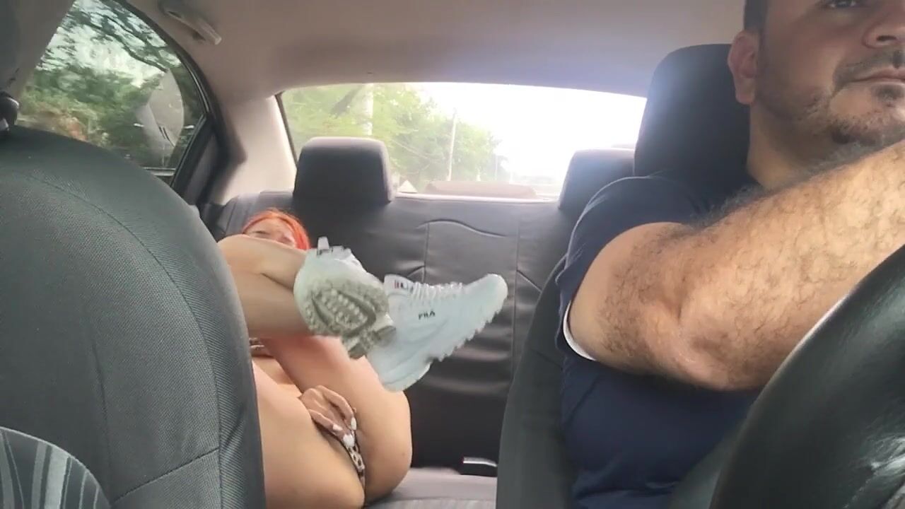 I'm in the back seat of the Uber touching my tits and caressing my pussy with my fingers while the d