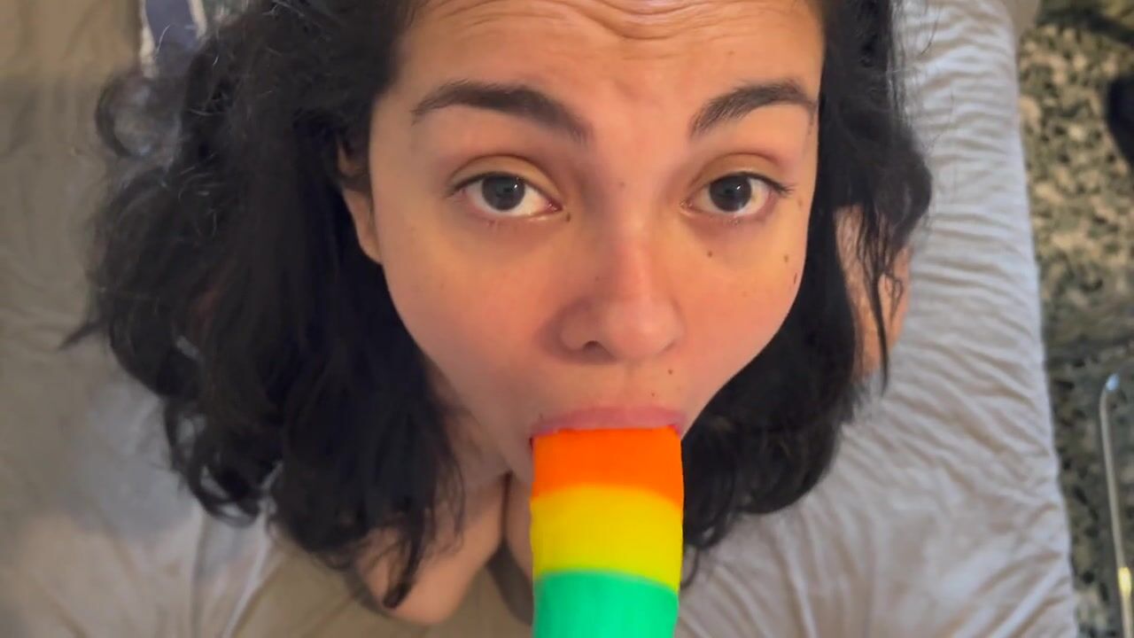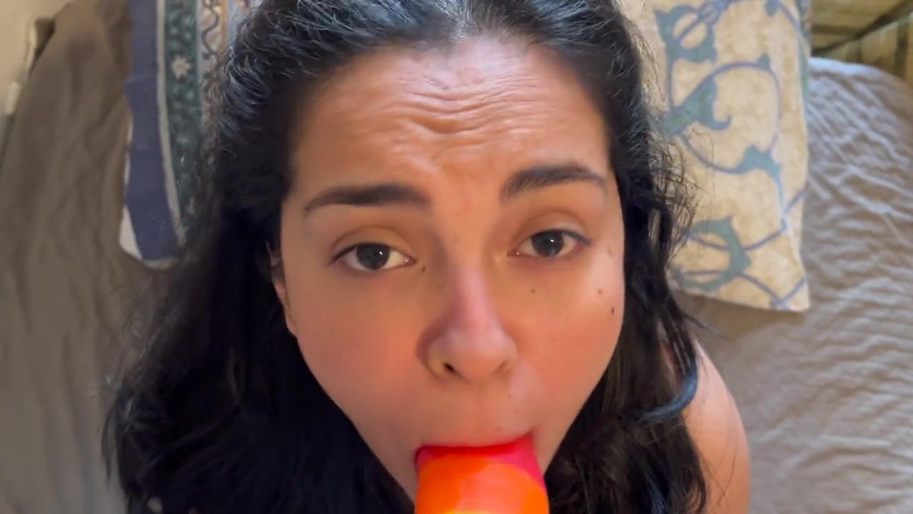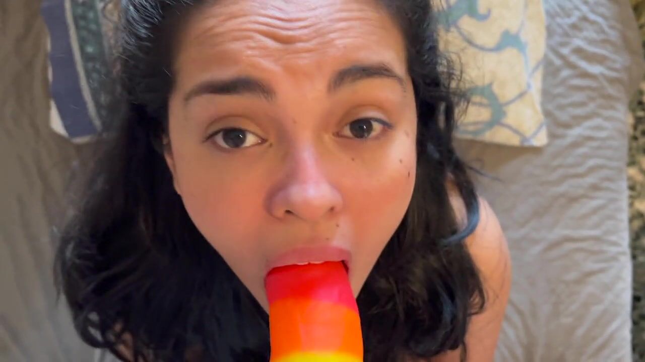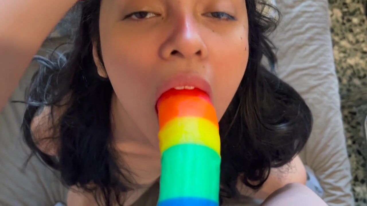 I teach my 18 year old sister to suck a dick for the first time with her dildo