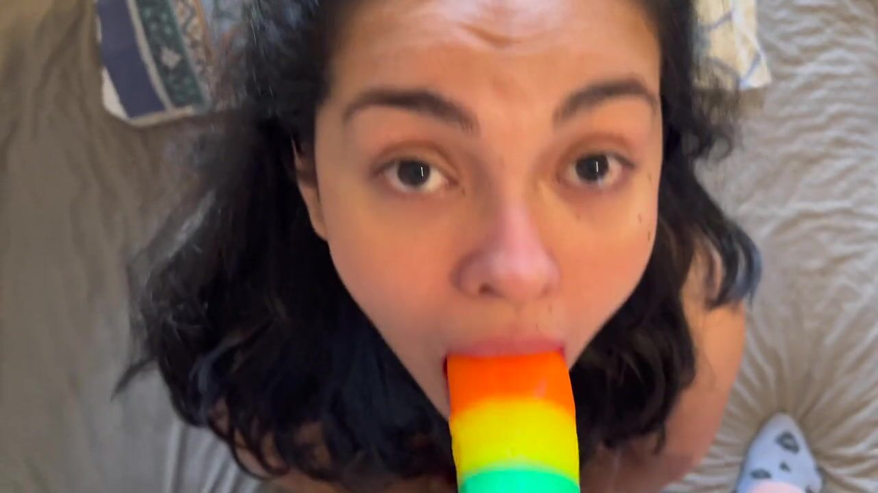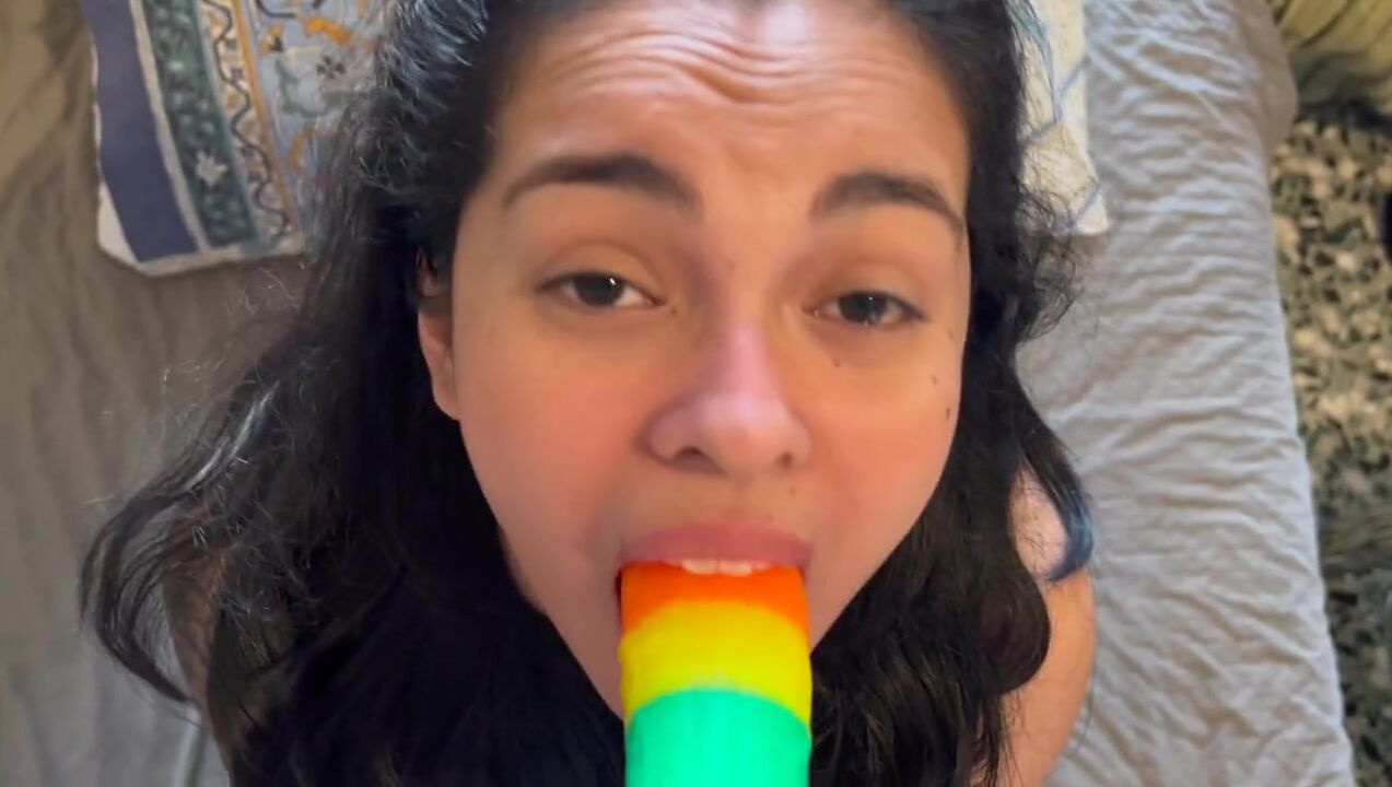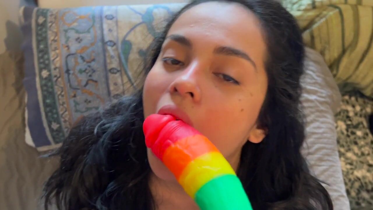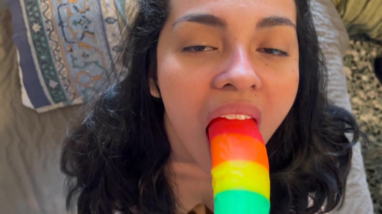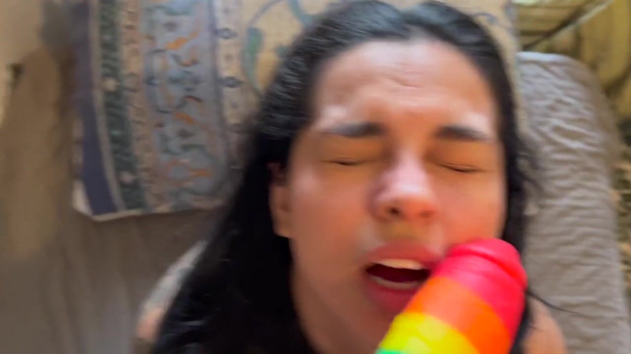 I teach my 18 year old sister to suck a dick for the first time with her dildo