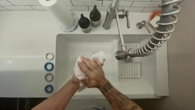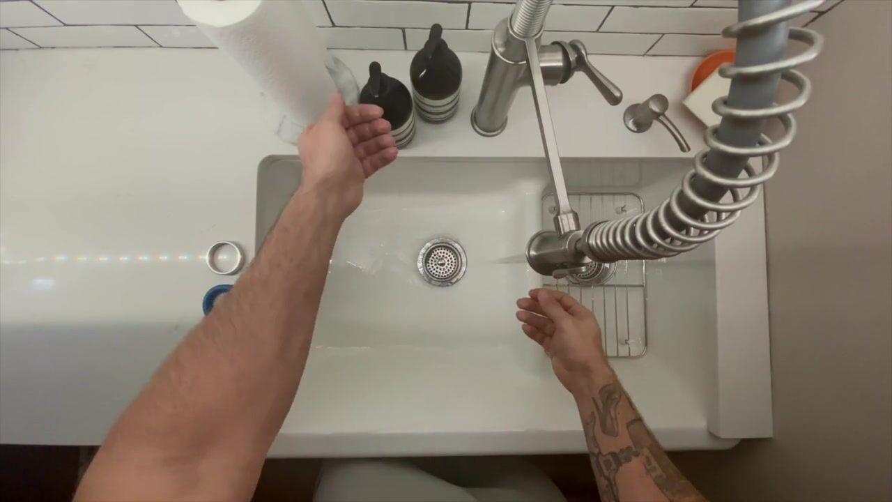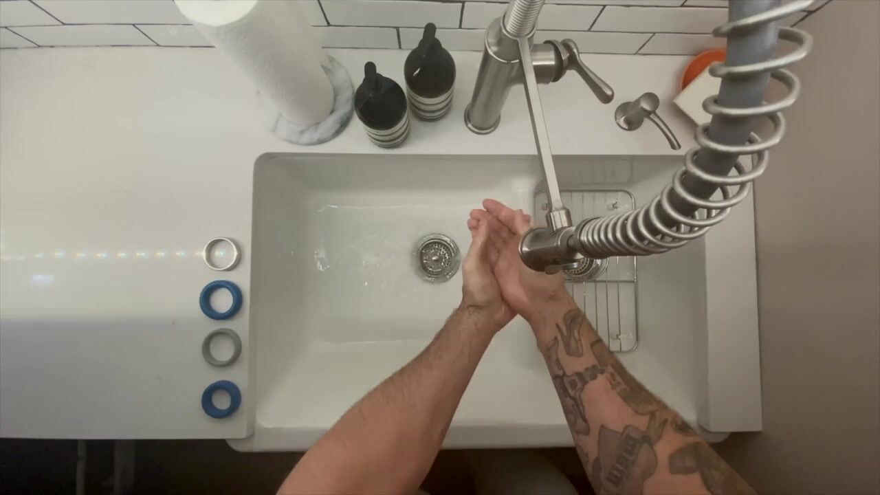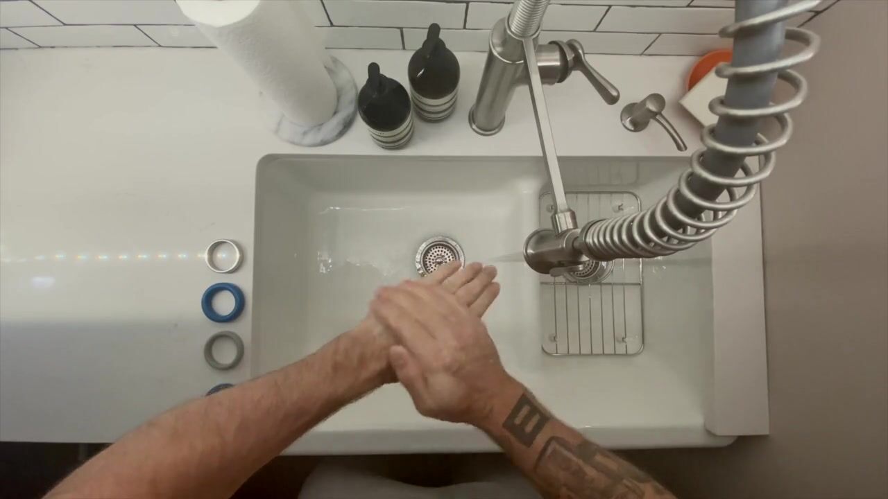 In-Home Massage Therapist Austin Wolf Washes Hands