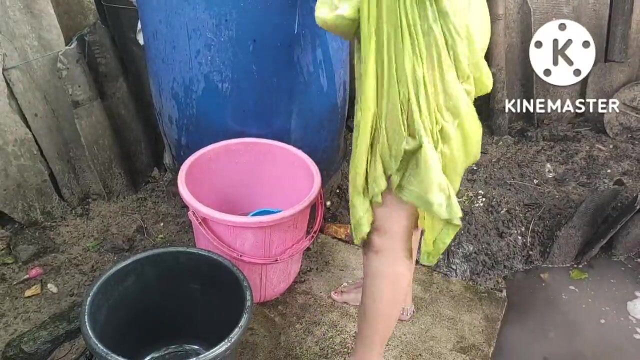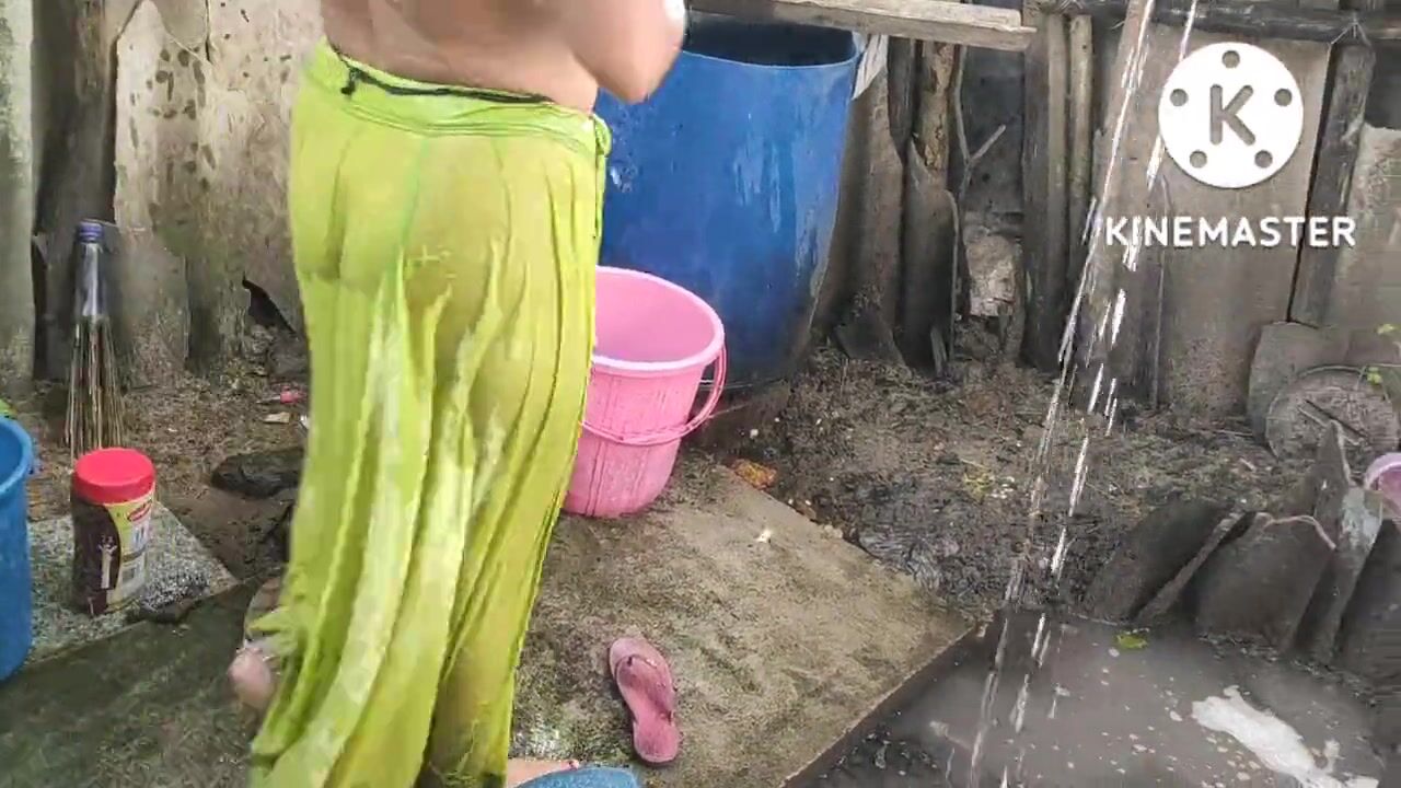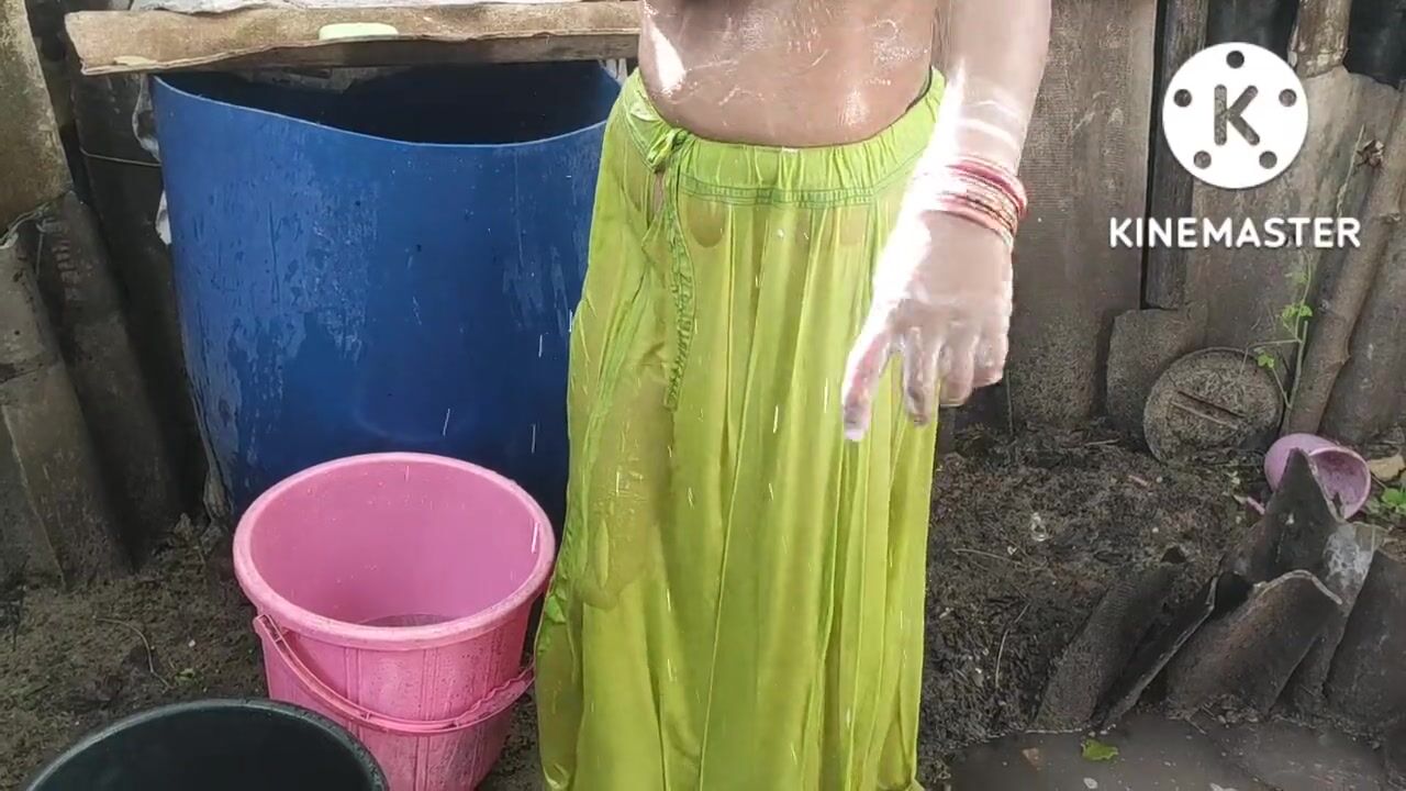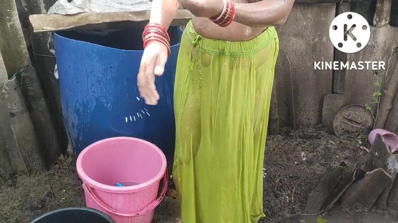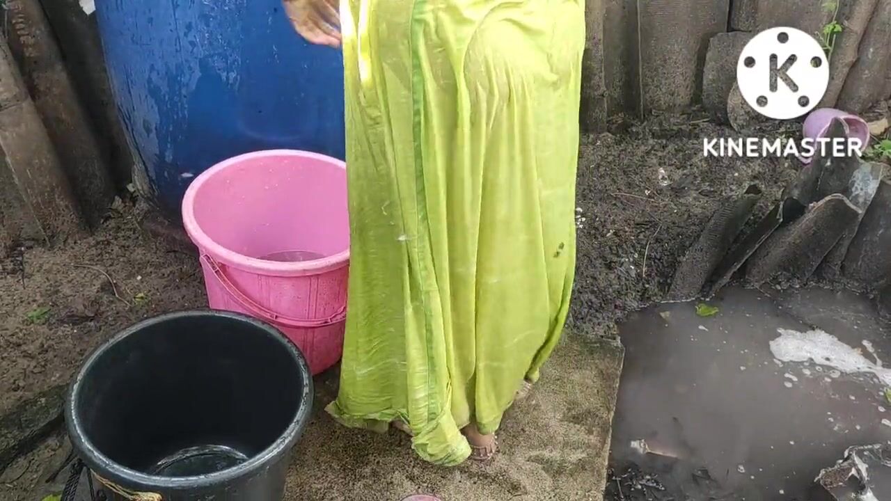 Indian house wife bathing anita style
