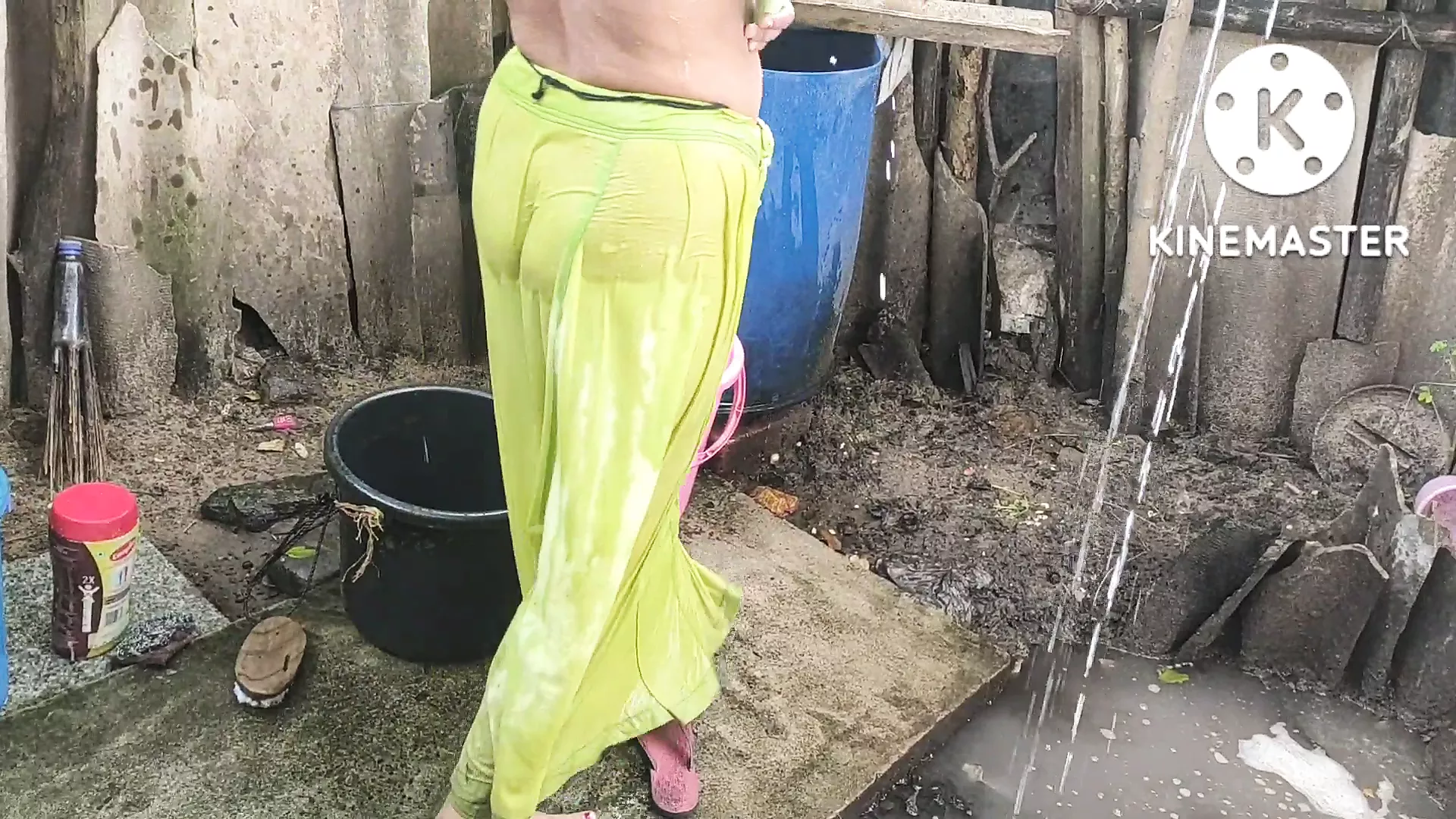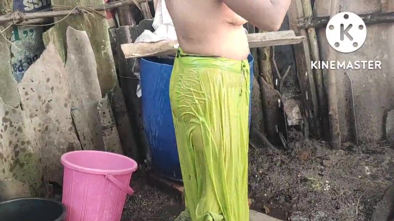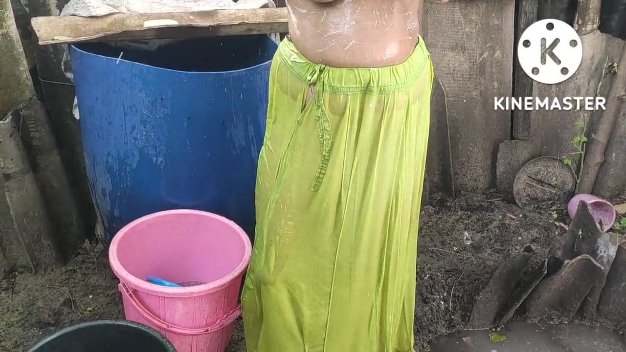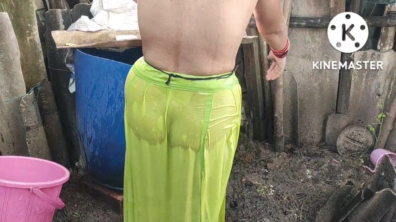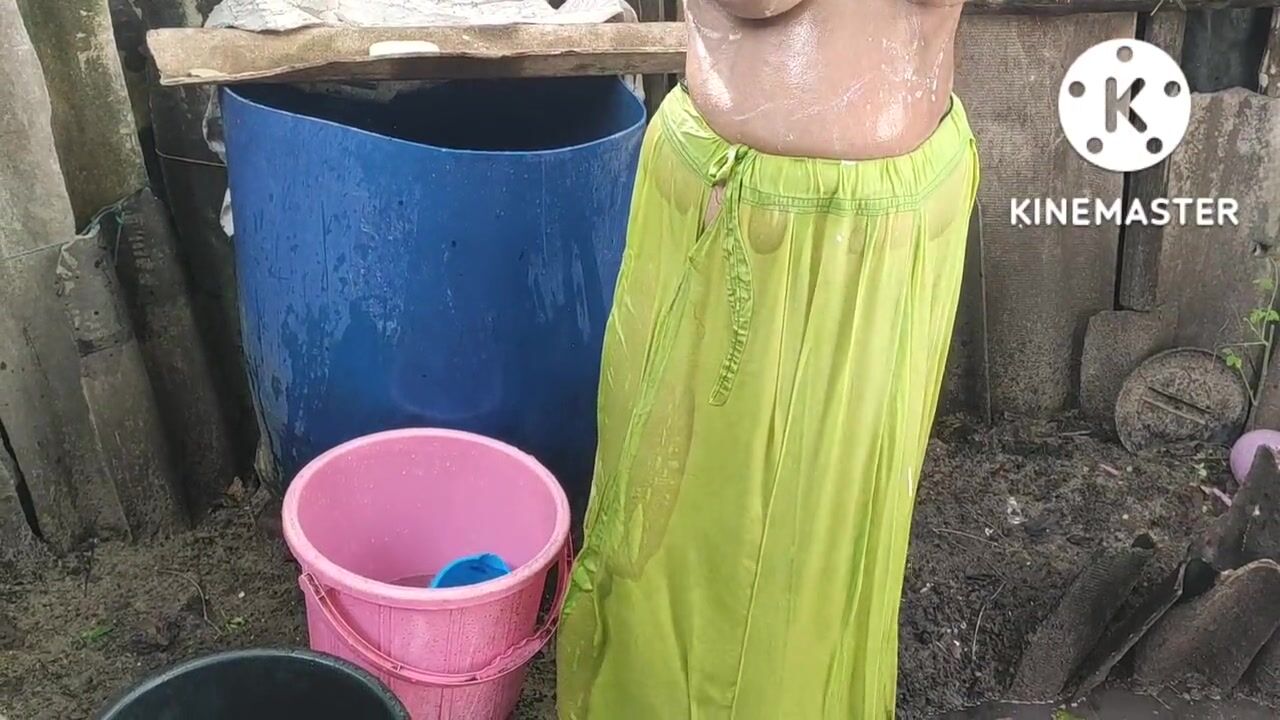 Indian house wife bathing anita style