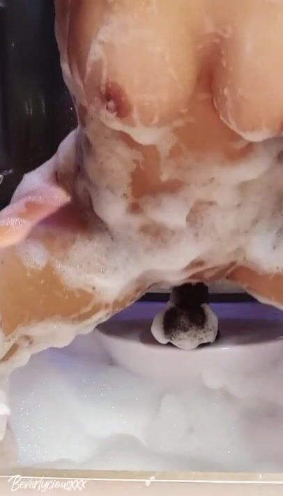 Italian Busty MILF caught showering and masturbating with a huge dildo, multiple orgasms