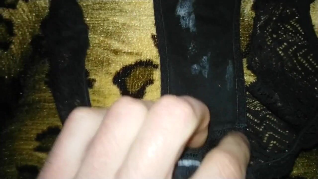 Jacking-off with gf's dirty stained panties and cumming onto them