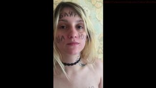 Dutch girl with needle pierced tits sucks cock and gets his cum in her eye