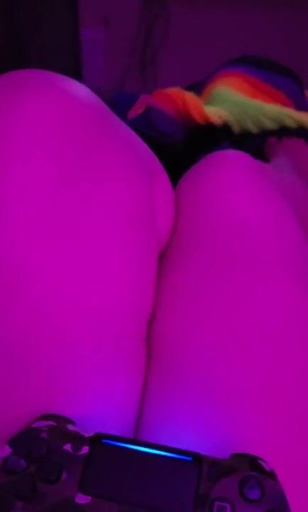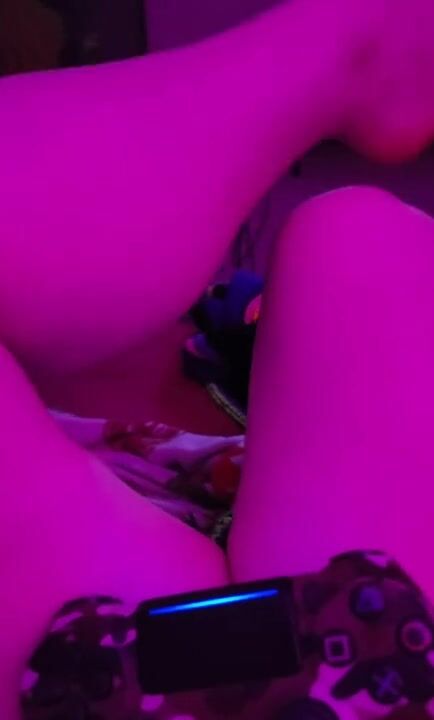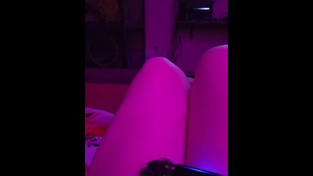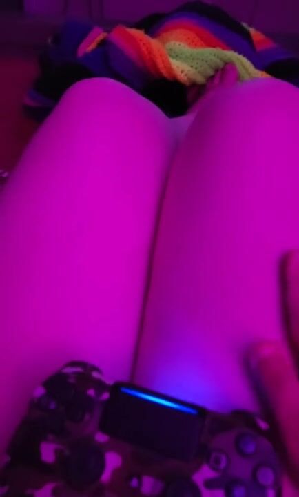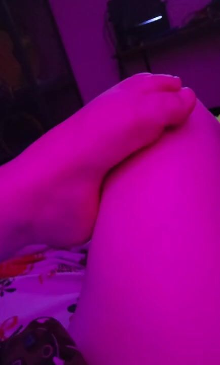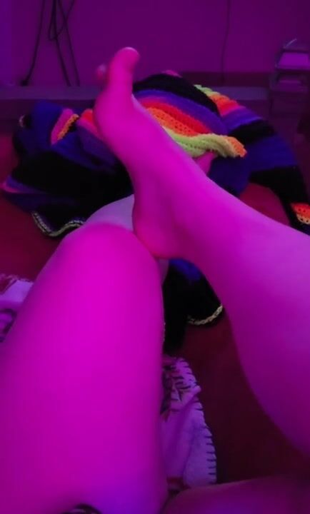 Late night gamergirl rubs her feet & thick thighs
