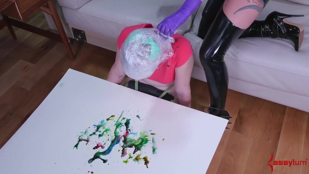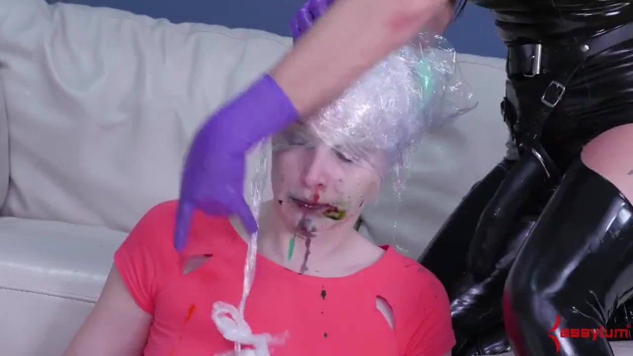 Latex clad sexy mistress domina ass fucks blonde teen with strapon