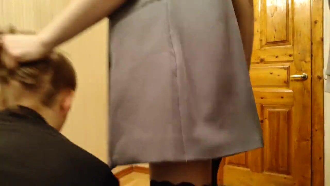 Leggy mistress makes her lick her pussy