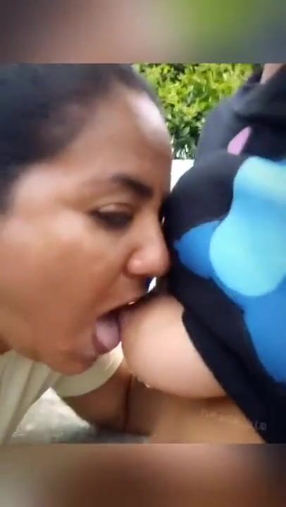 Lesbians milking in public