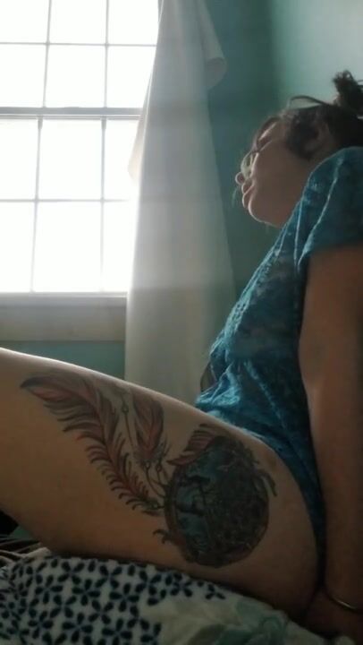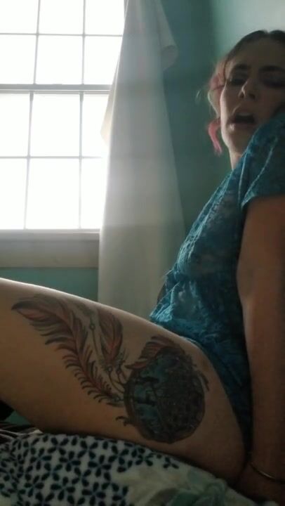 Schoolgirl tranny fucks classmate with tattooed dick! ANAL gapes, Cum covered ass