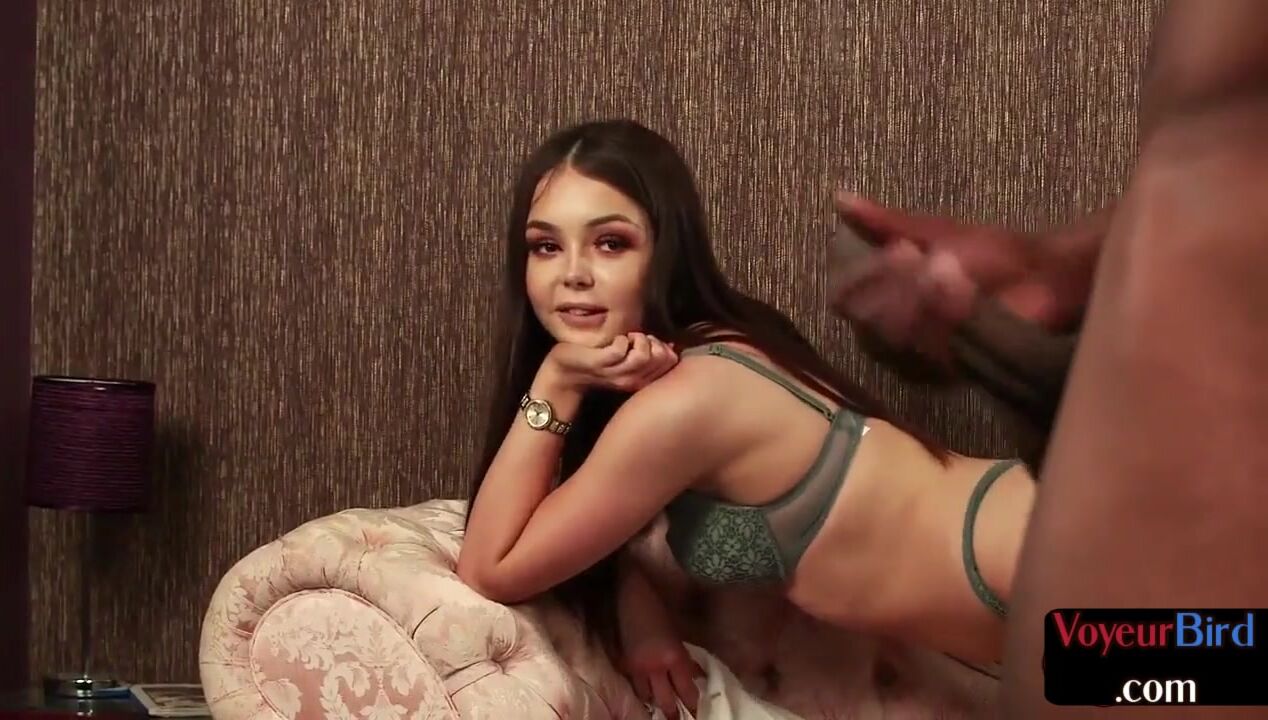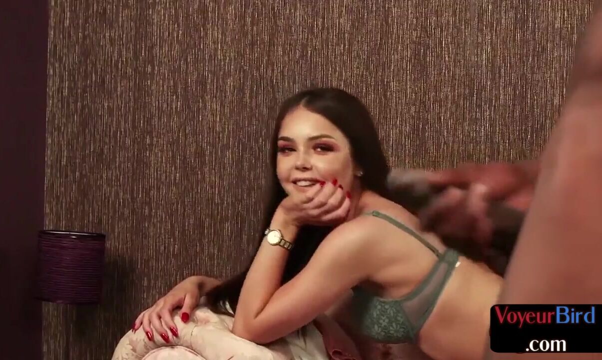 Lingeried voyeur enjoys interracial JOI session