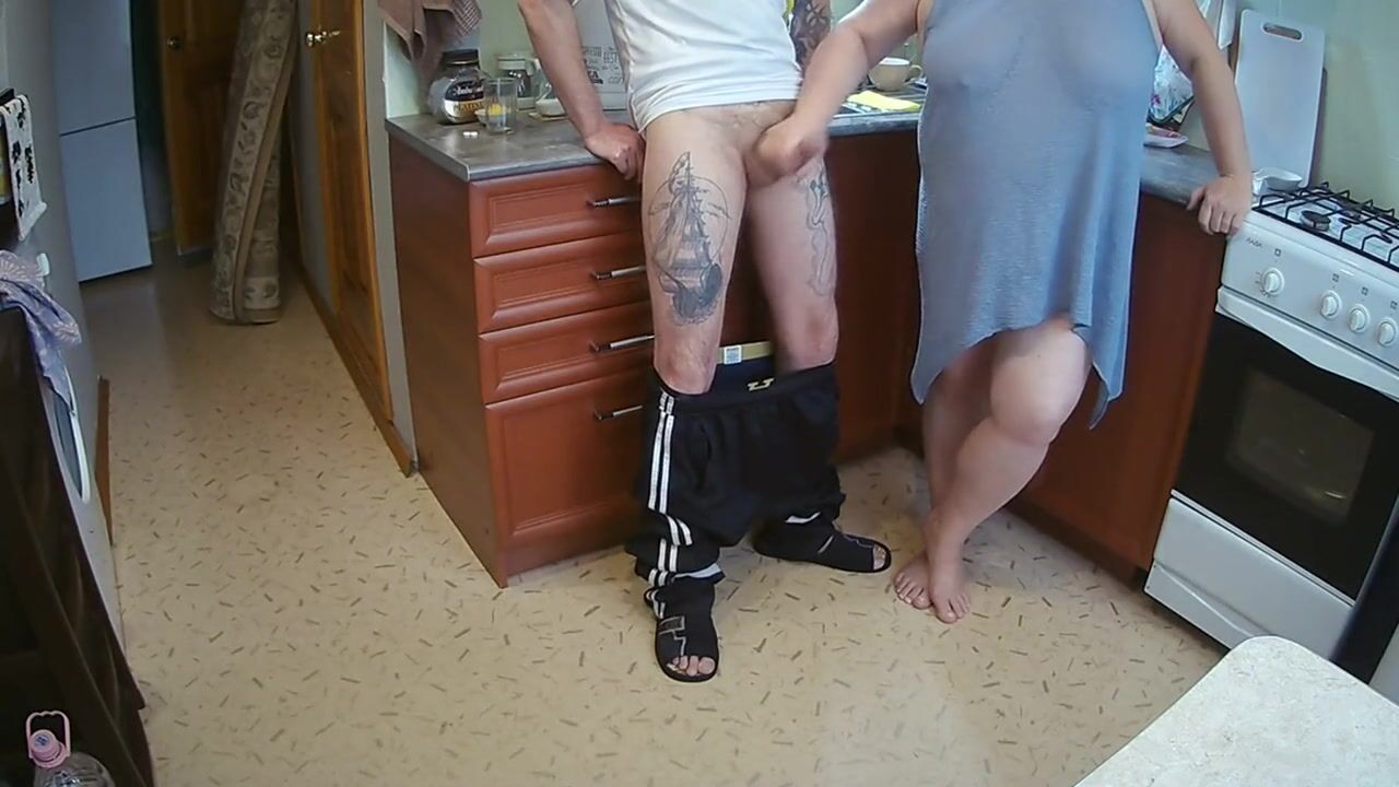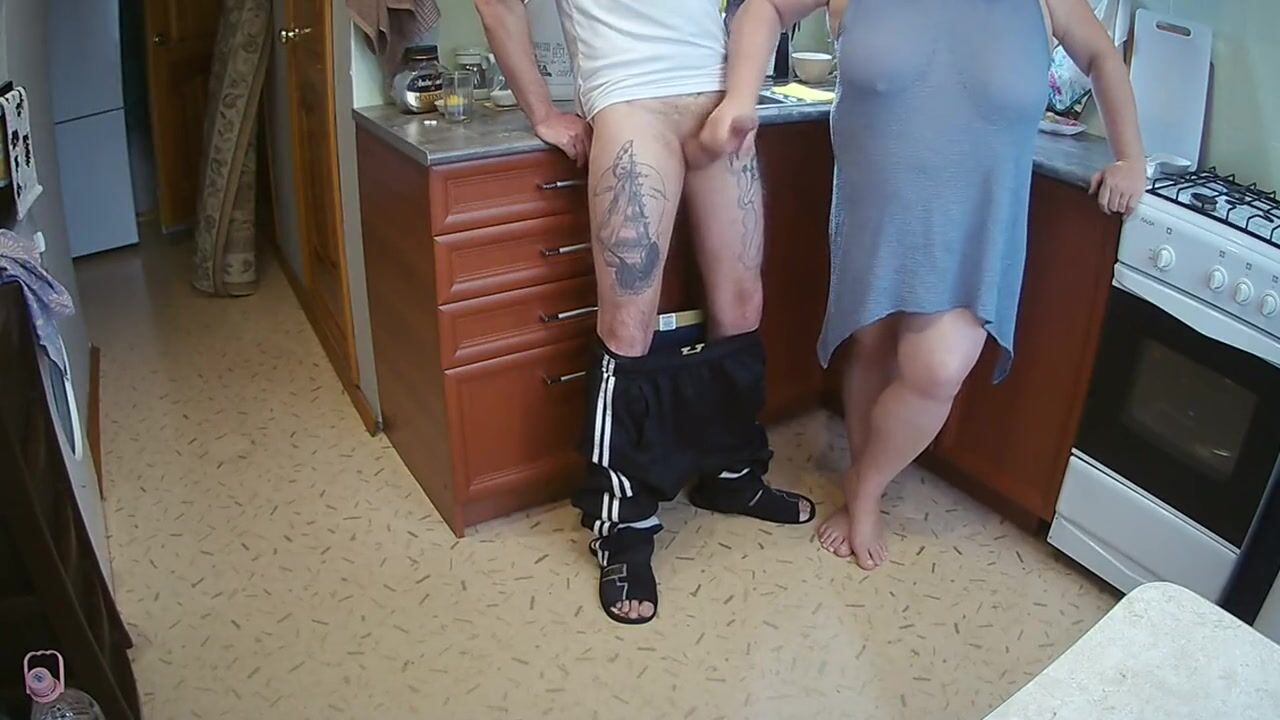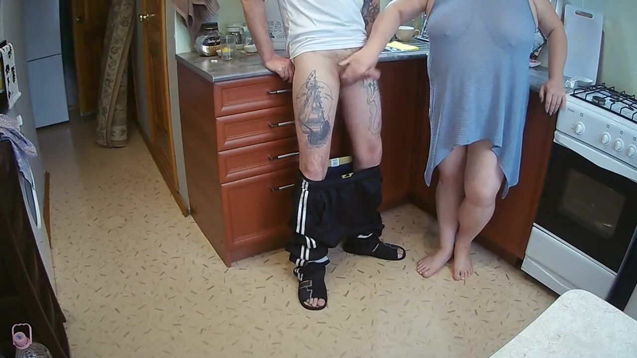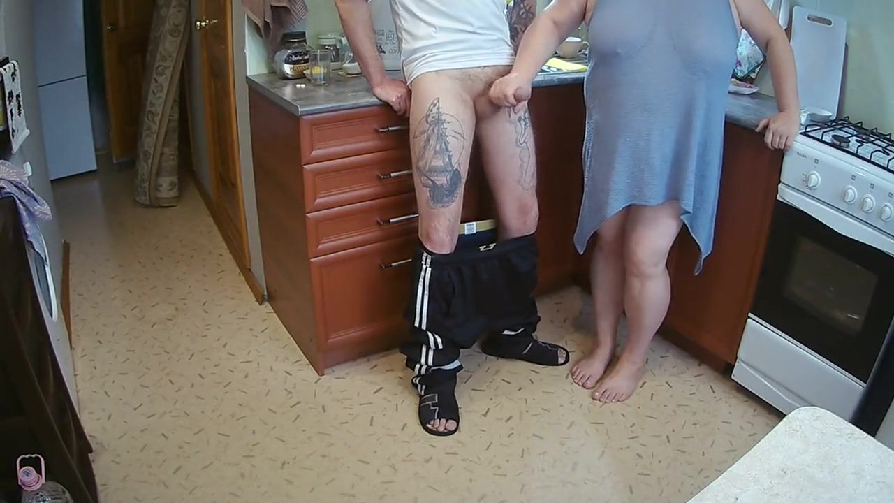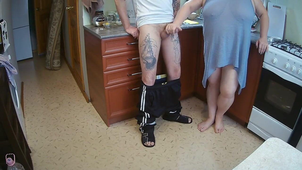 manual stimulation of my penis before cumshot in the morning in the kitchen