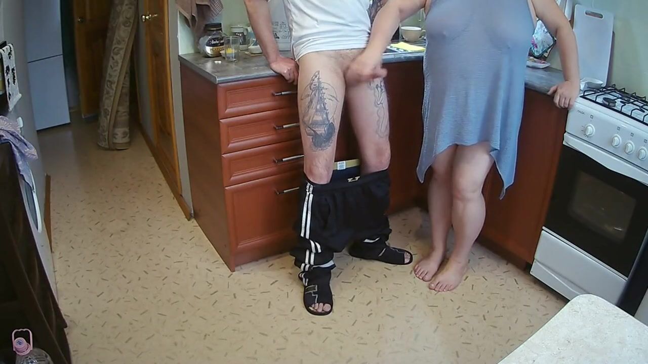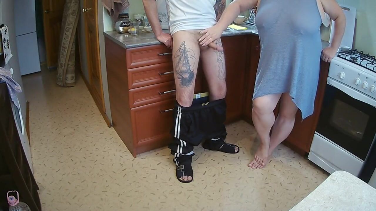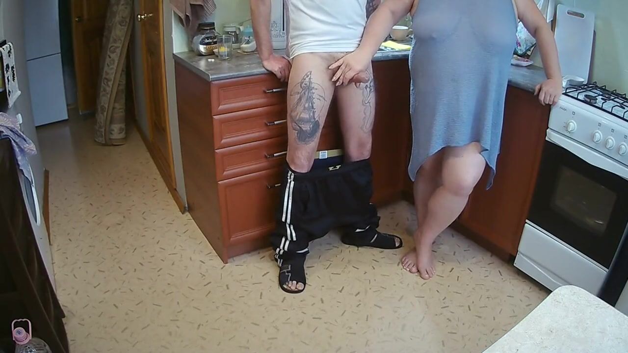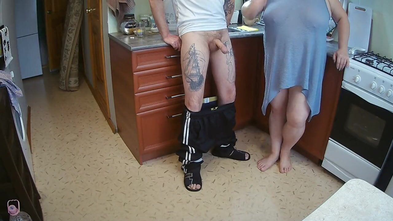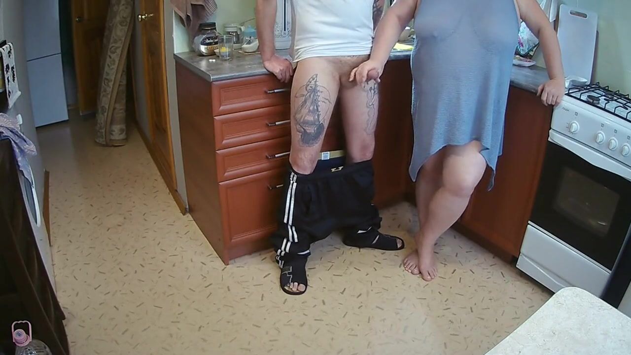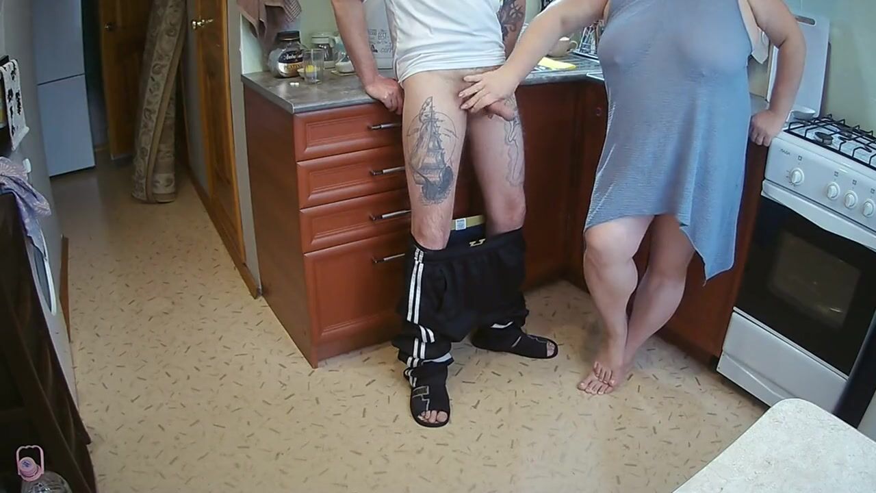 manual stimulation of my penis before cumshot in the morning in the kitchen